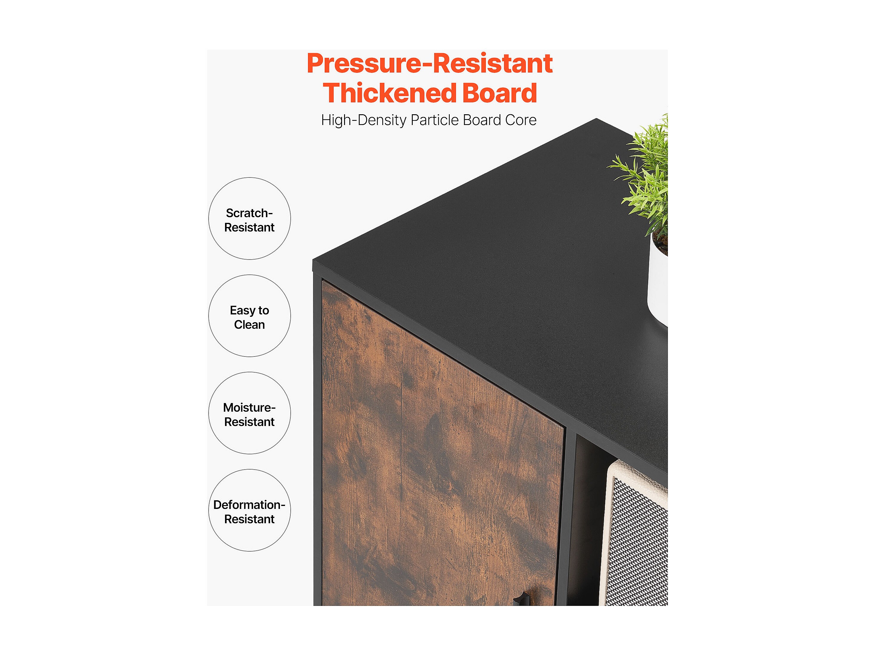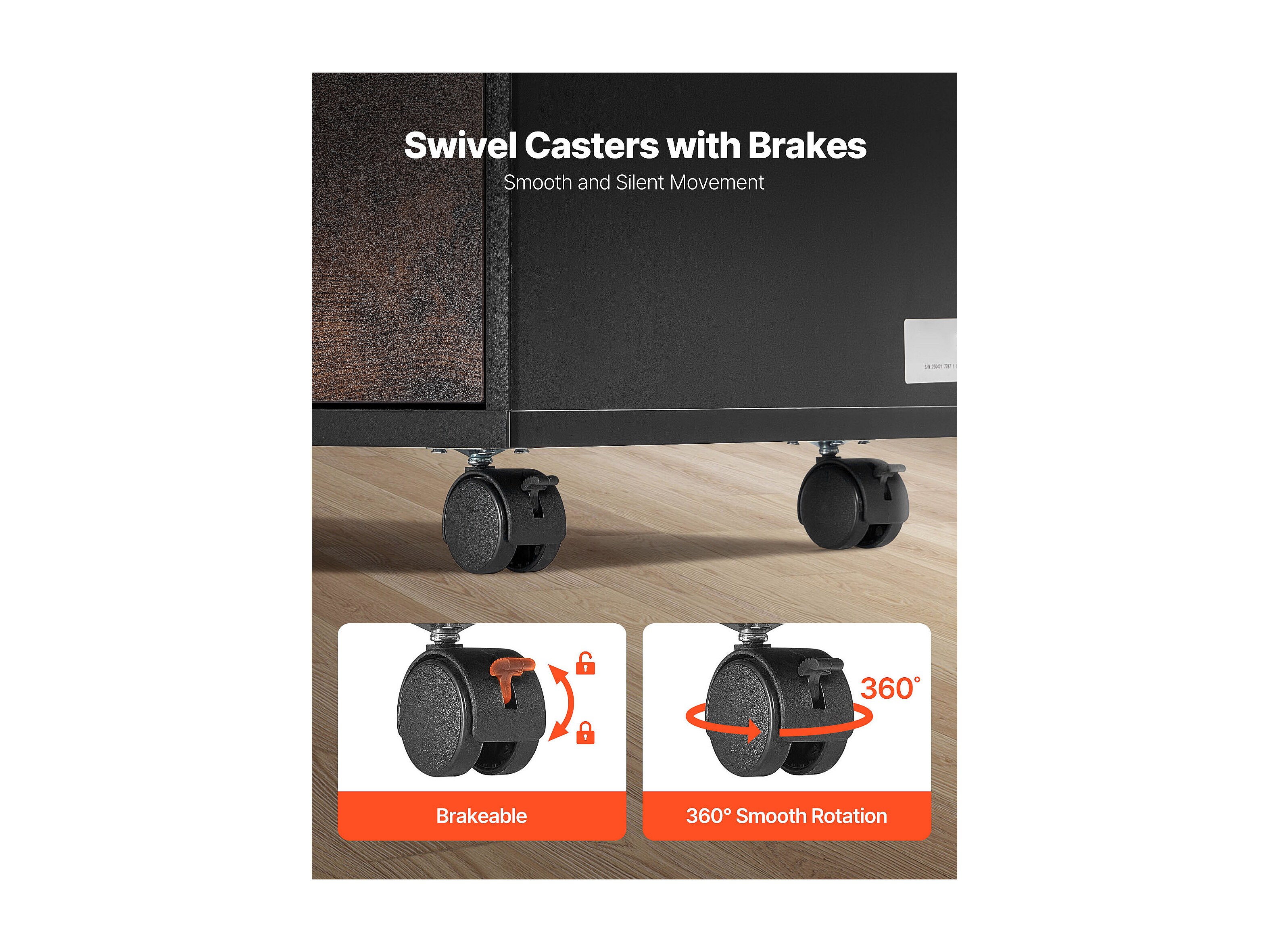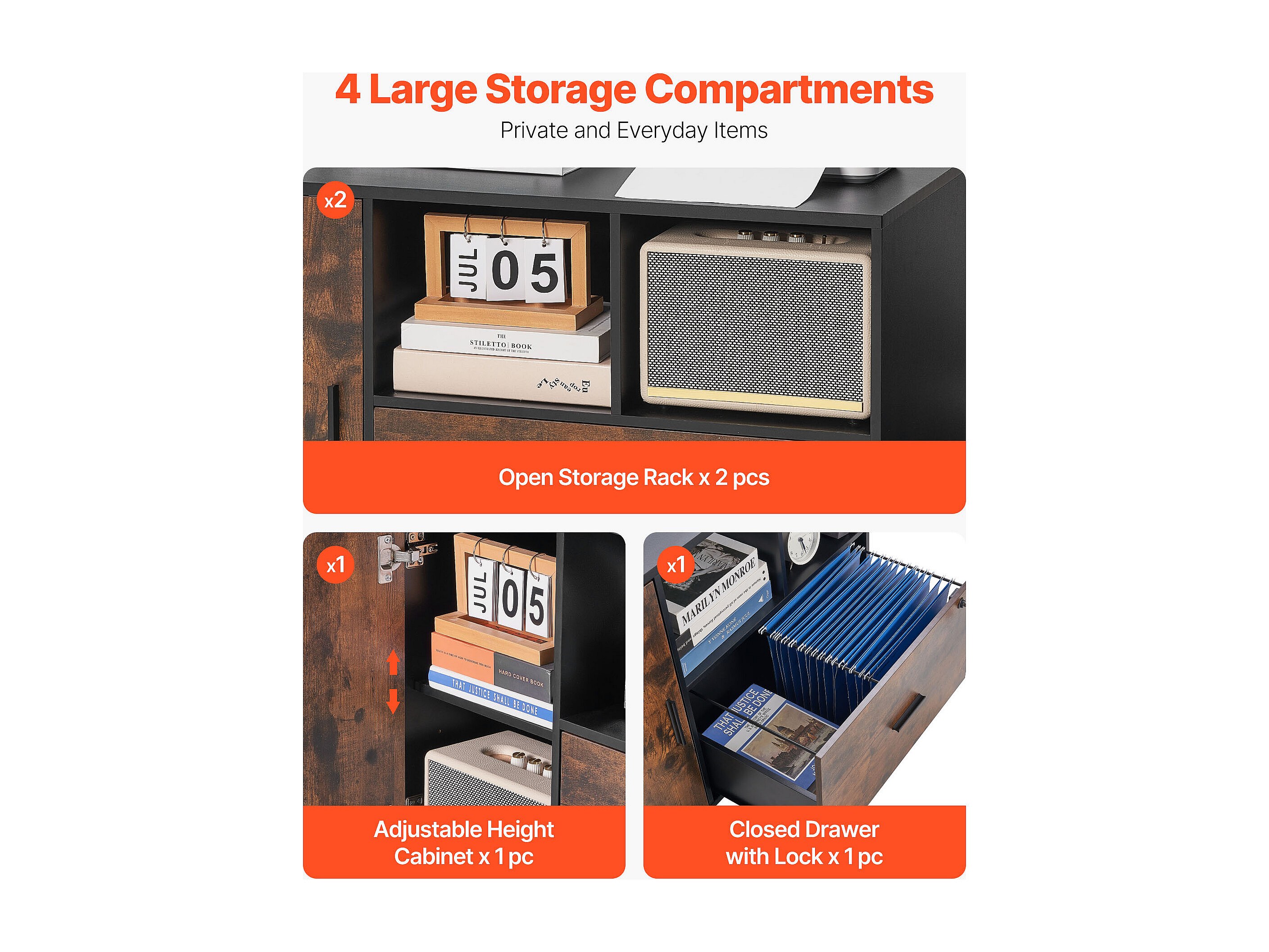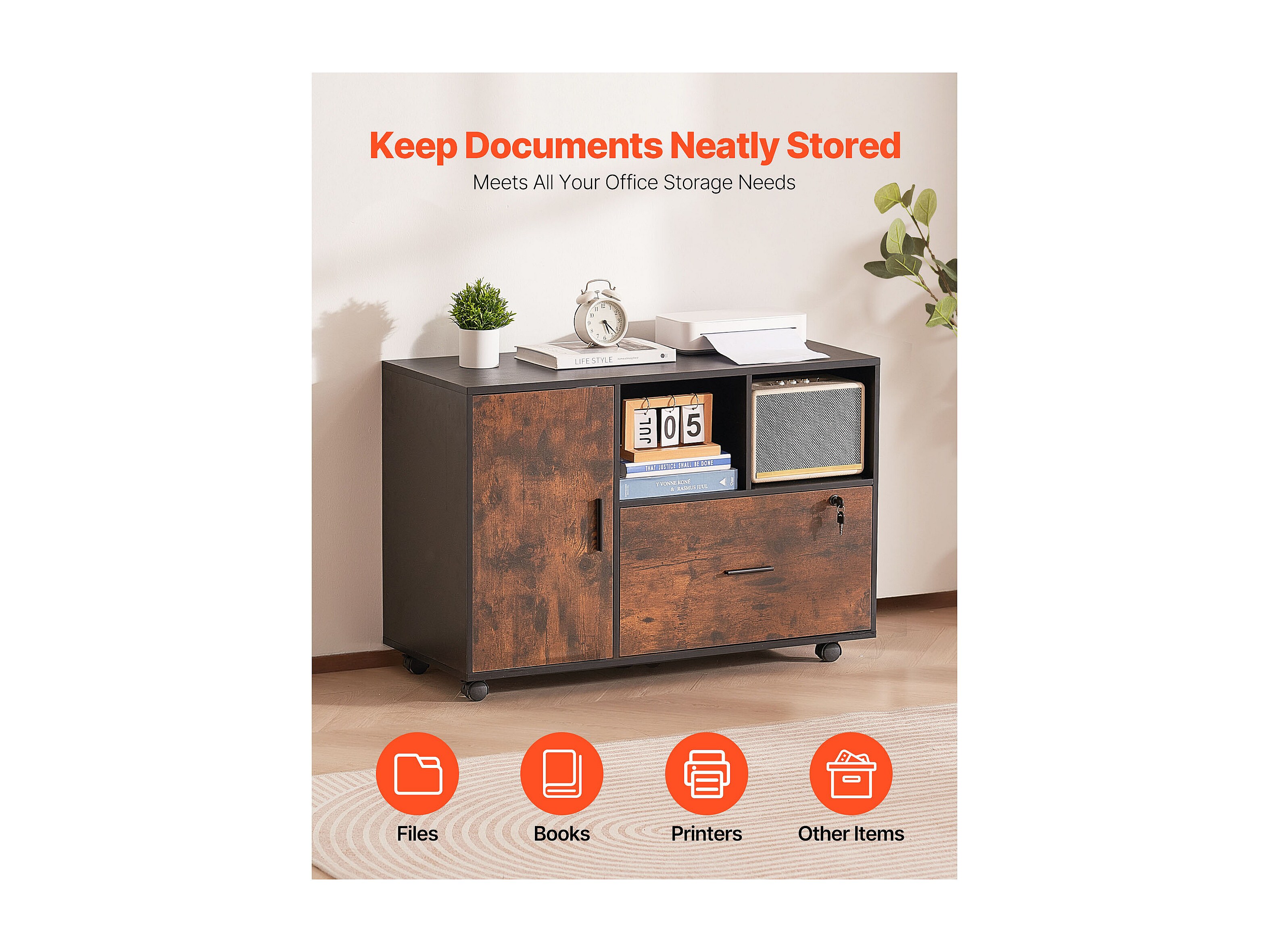 Rollcontainer SucceBuy aus Holz, Büroaufbewahrungsmöbel mit Offenen Regalen und Abschließbarer Schublade, für das Büro, Rustikal Braun