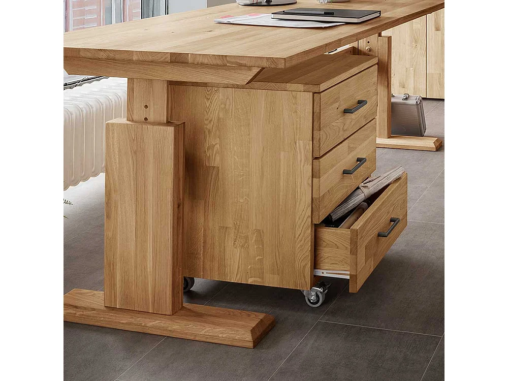 Rollcontainer Wildeiche geölt mit drei Schubladen 60 cm hoch