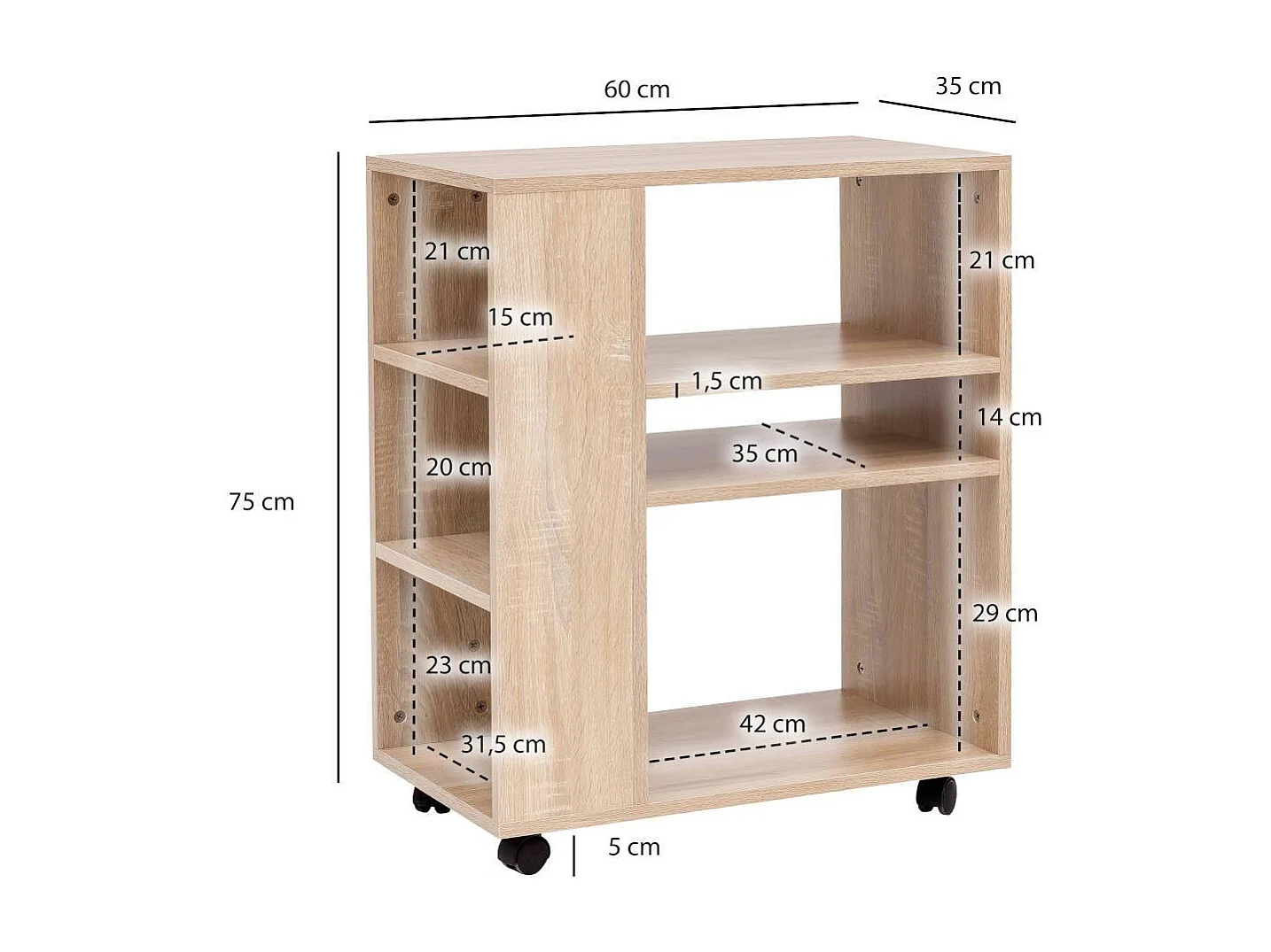 Rollen Regal in Sonoma-Eiche 75 cm hoch