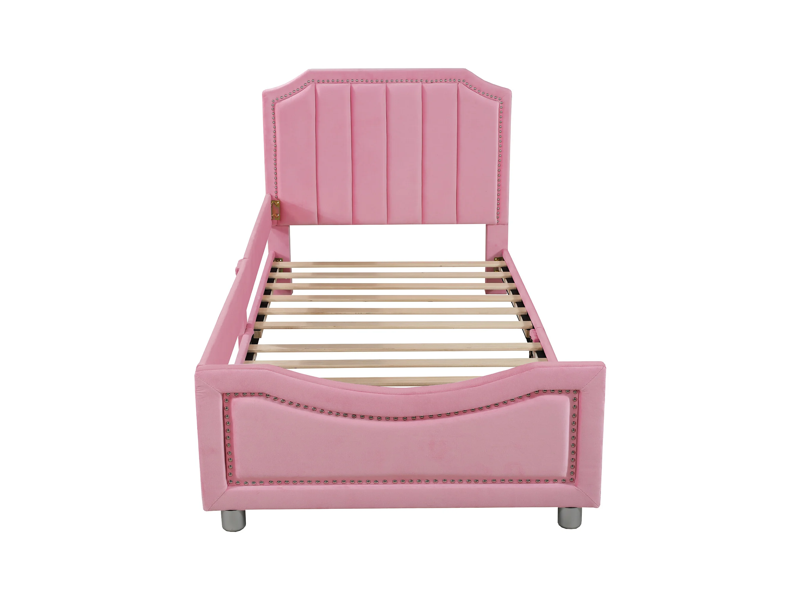 Rosa Kinderbett/Teenager/Eltern-Kind weiches Bett 90,200cm Schlafsofa Plüsch Bettrahmen Multifunktionales weiches Bett