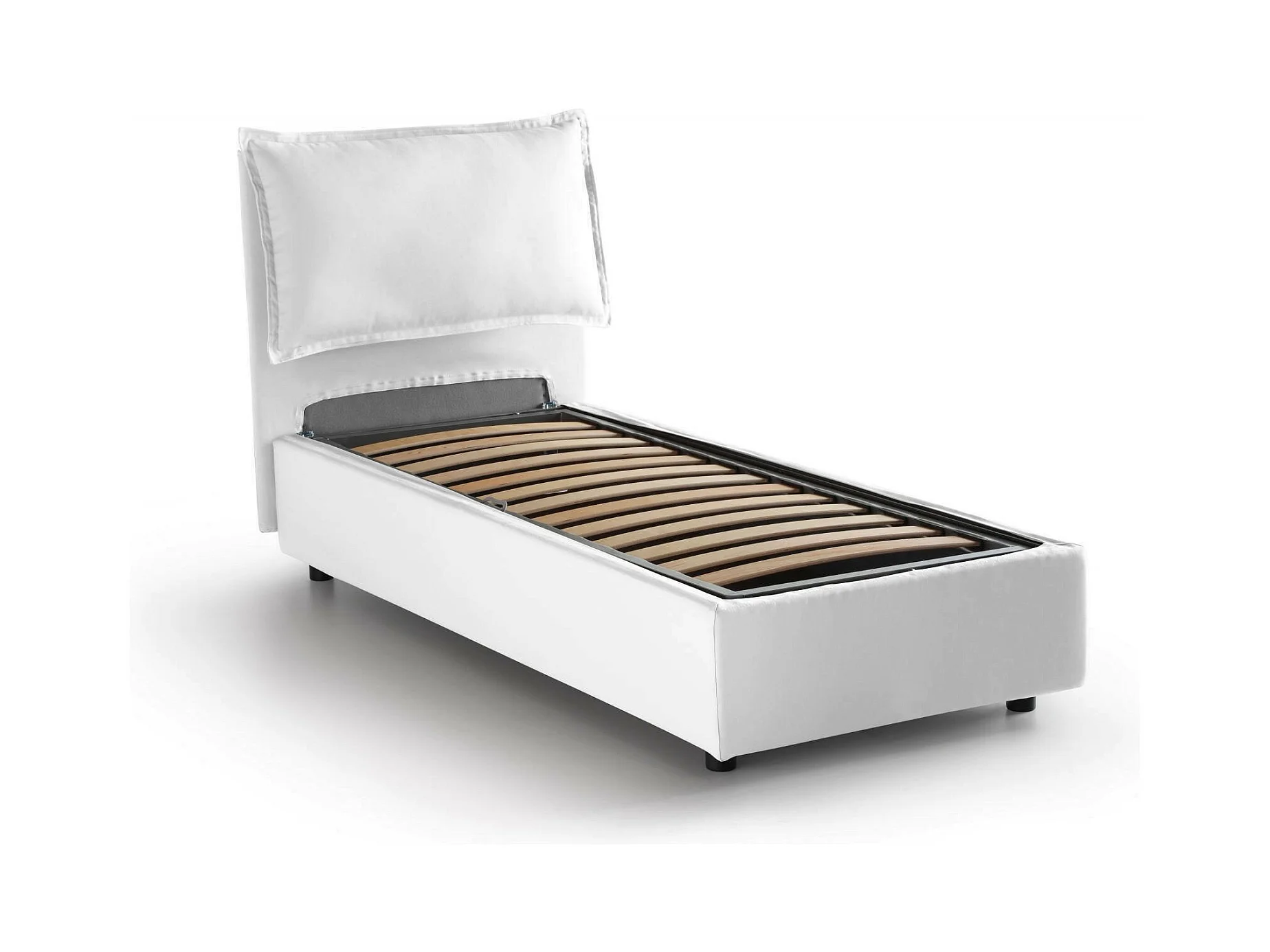 Rossella-Einzelbett, Bettkasten mit Stoffbezug, 100 % Made in Italy, Öffnung vorne, inklusive Matratze 80 x 200 cm, Weiß