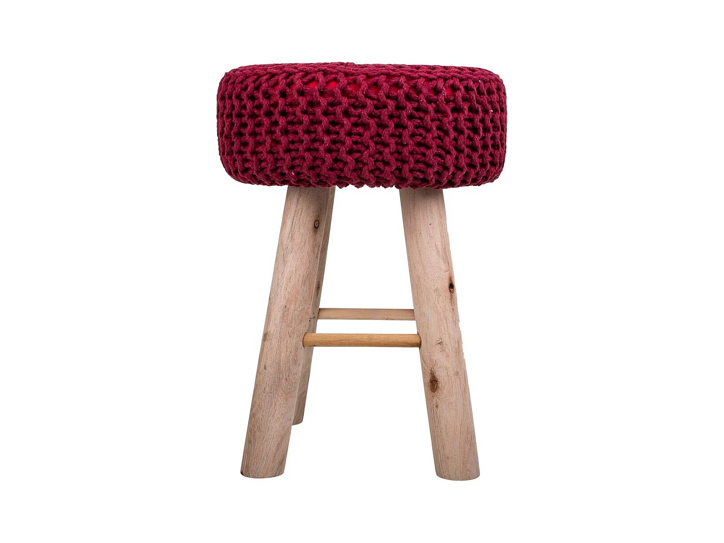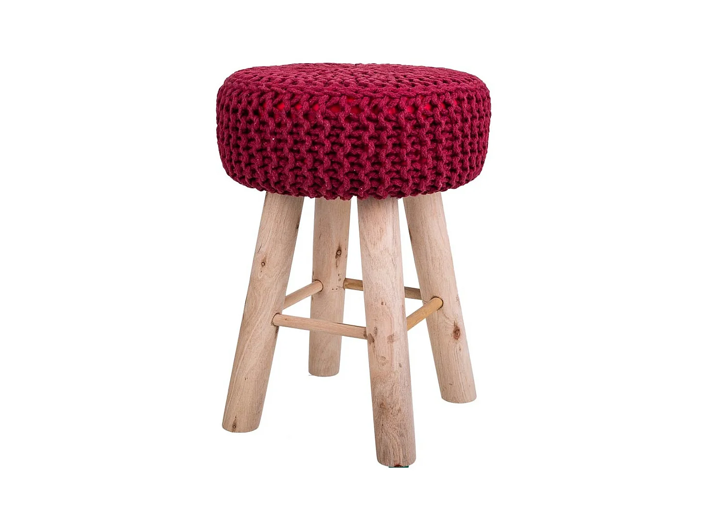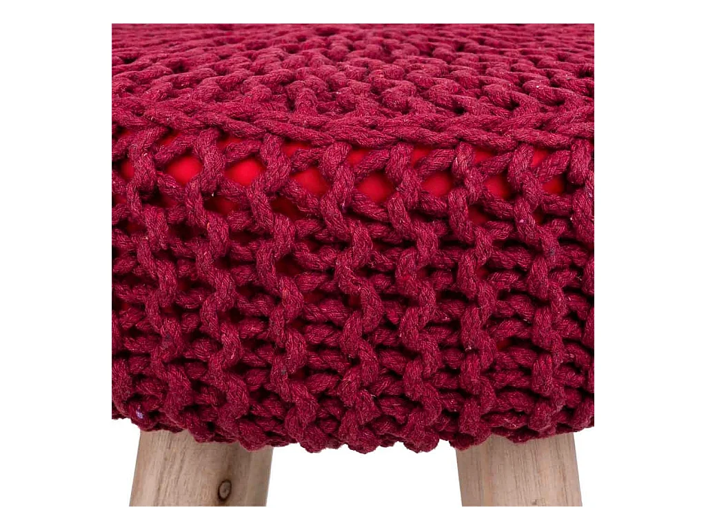 Roter Hocker aus gewebter Baumwolle und Holz, 32x32x44h cm