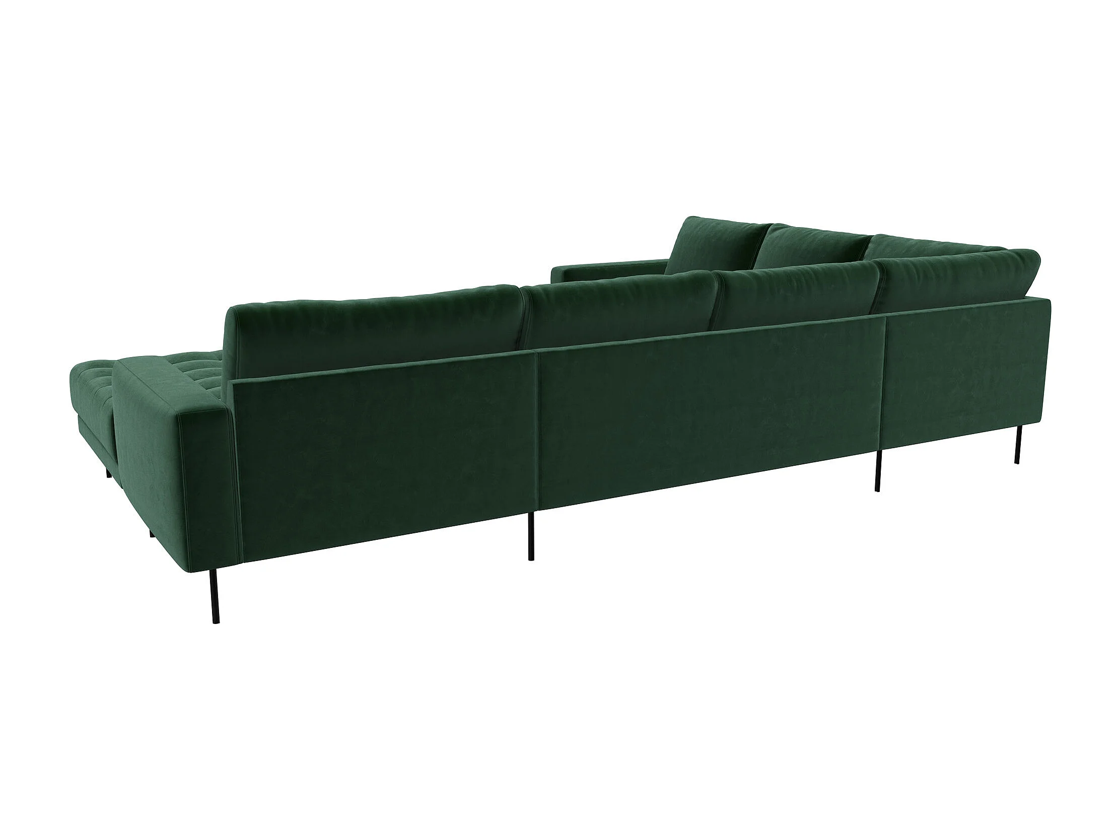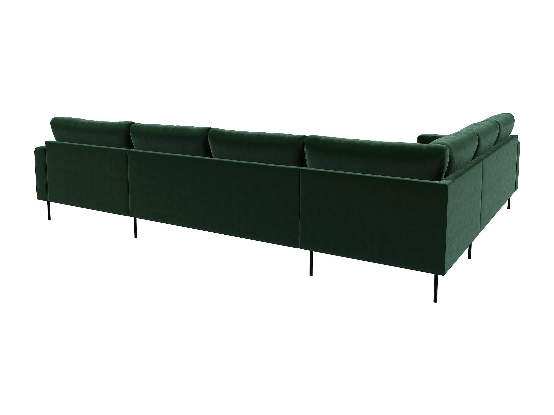 Rouge Ecksofa mit Chaiselongue und schwarzen Beinen. Dunkelgrün//Rechtsgewendet