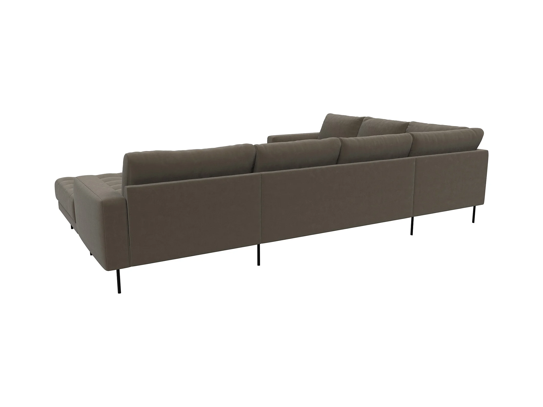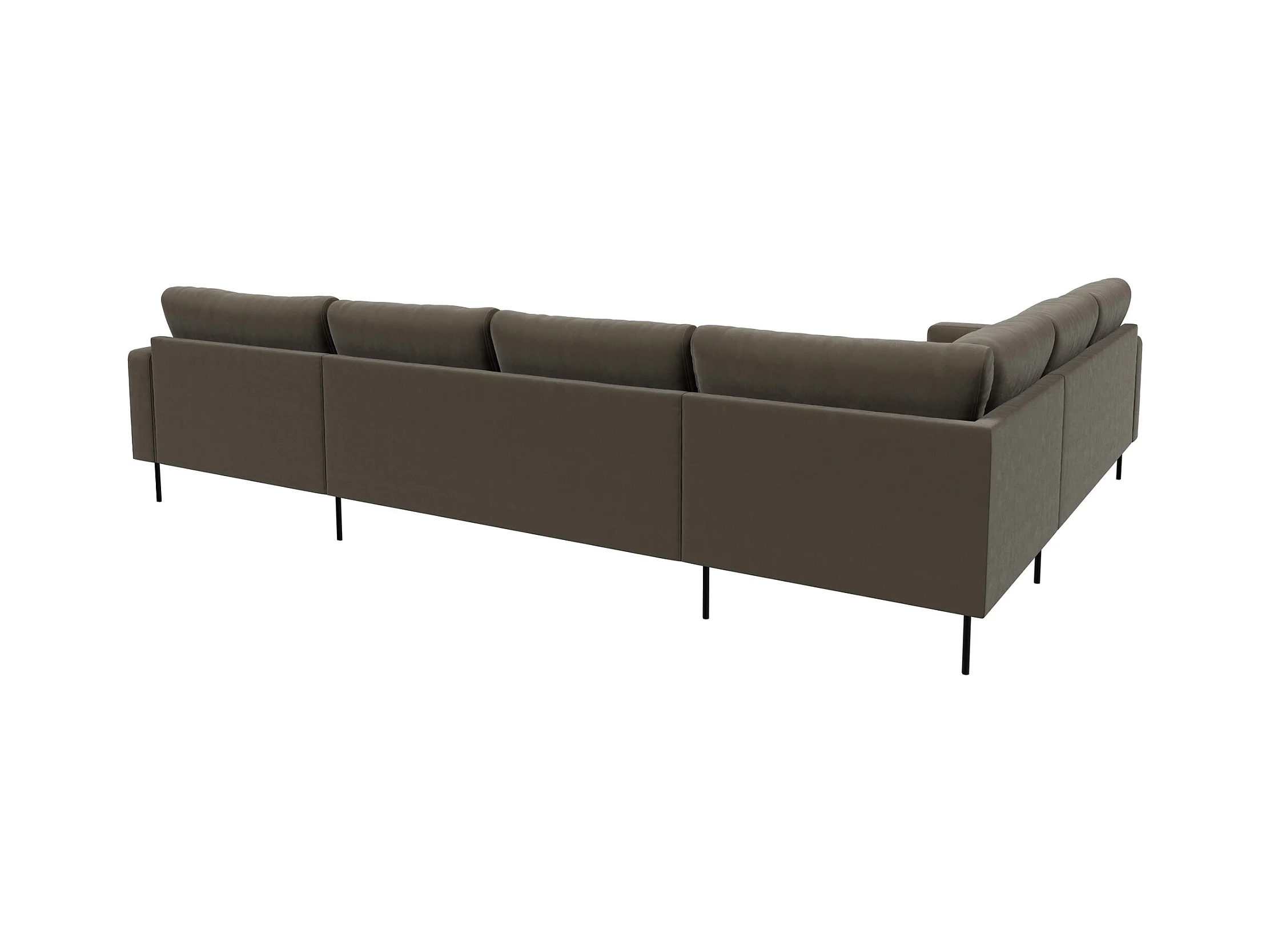 Rouge Ecksofa mit Chaiselongue und schwarzen Beinen. Grau-braun//Rechtsgewendet