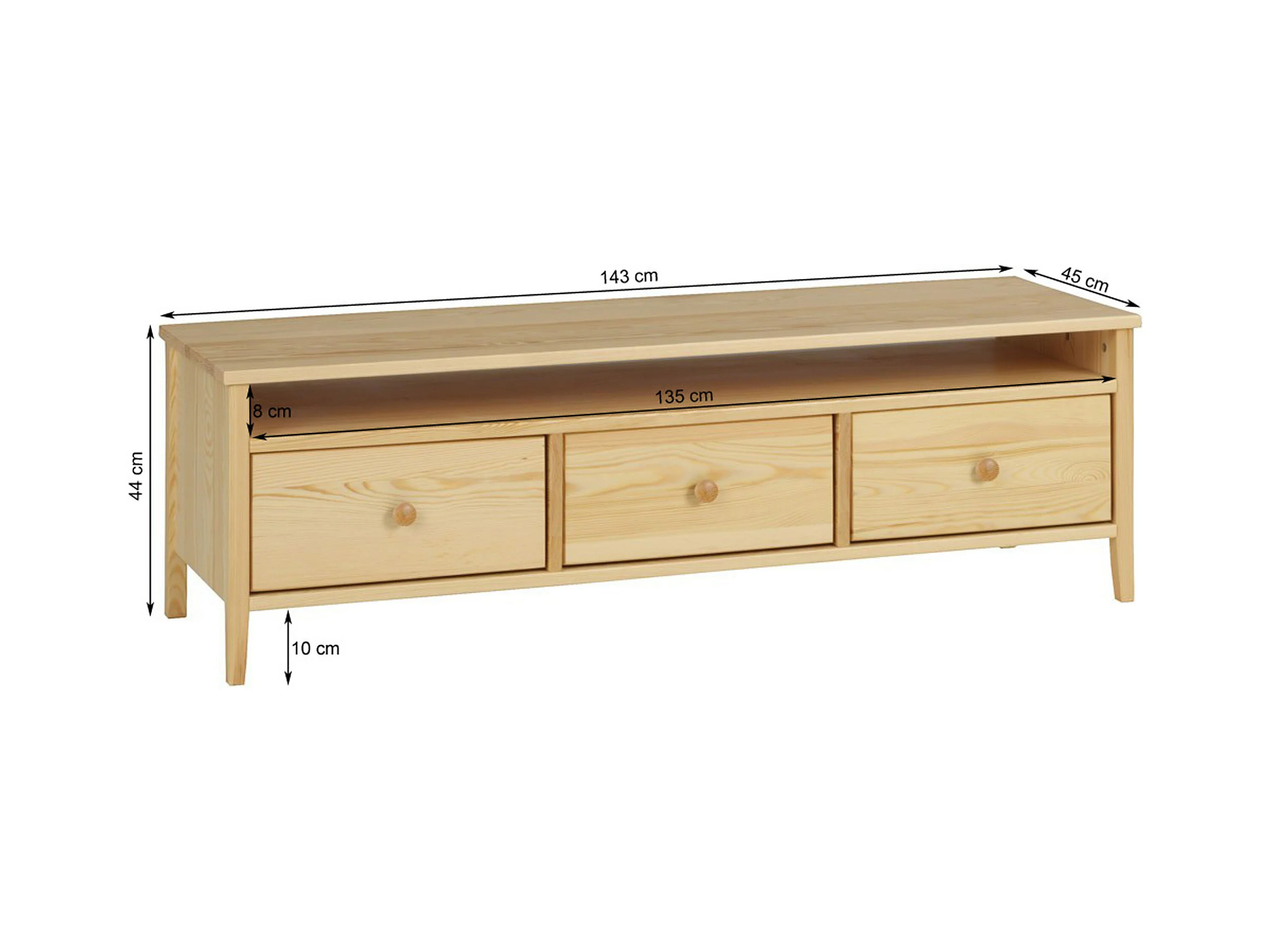 RTV Tisch 143 Colorado 3 Schubladen aus Holz, Farbe Kiefer