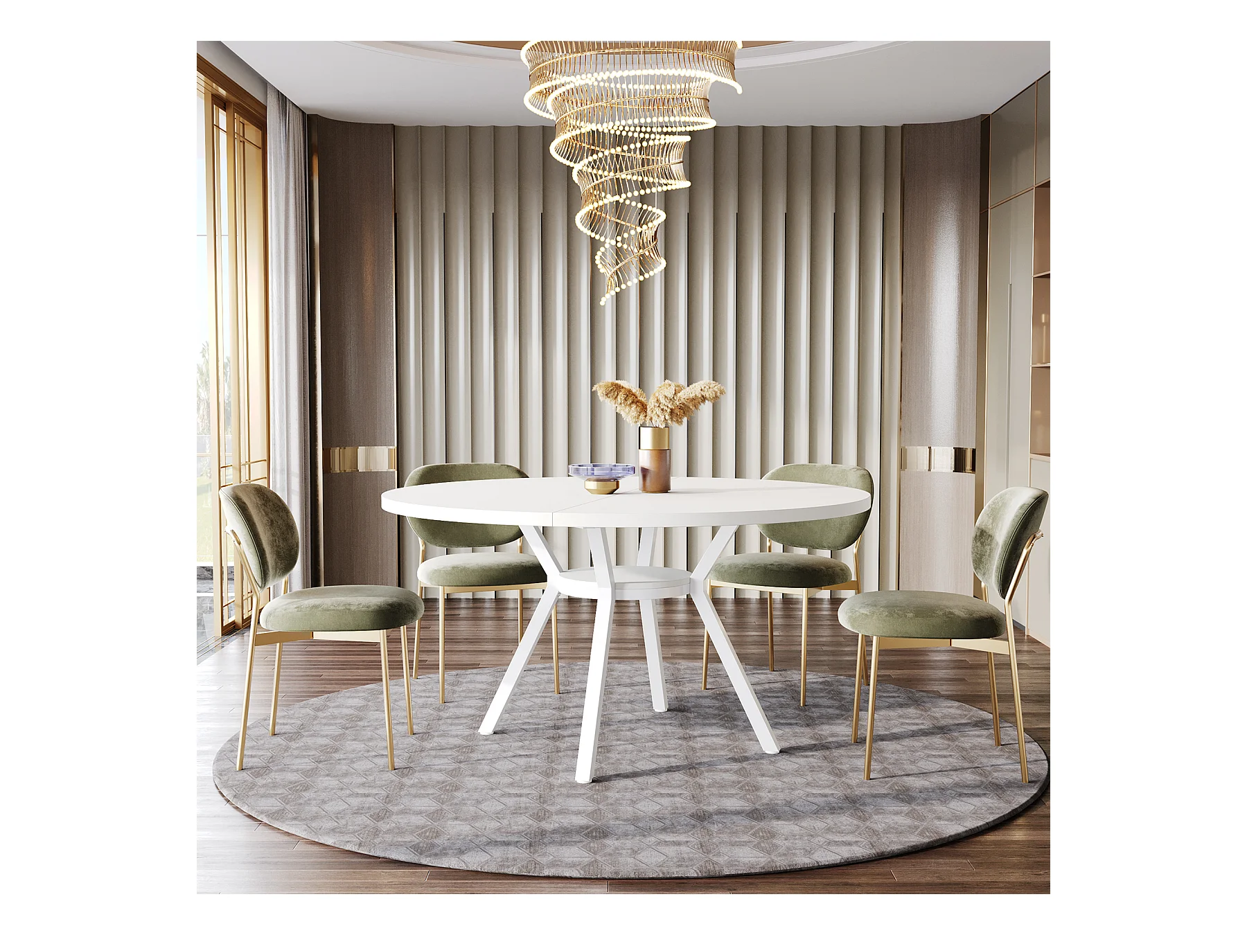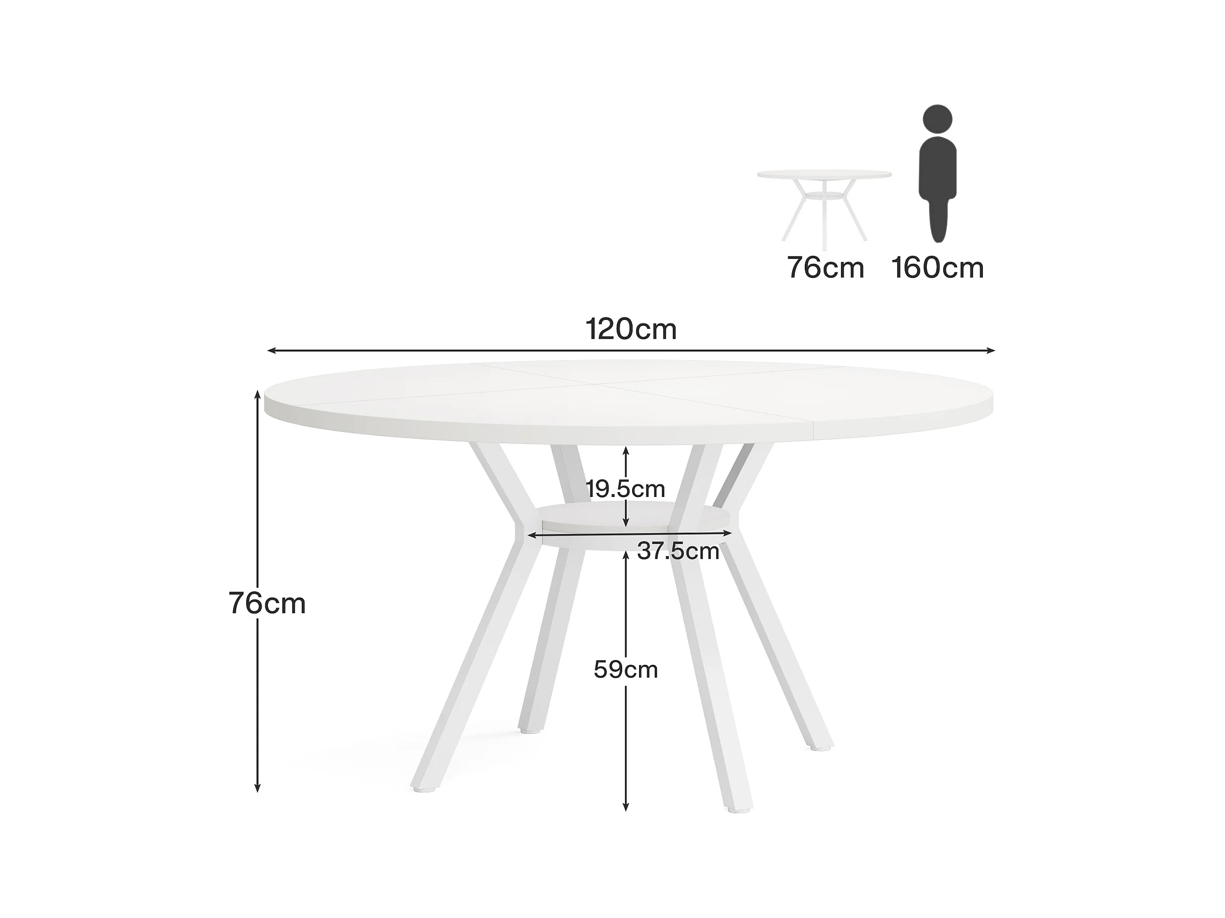 Runde Esstischplatte mit MDF-Effekt, 120x120x75 cm, mit vier Metallbeinen, weiß, perfekt im skandinavisch-retro Stil