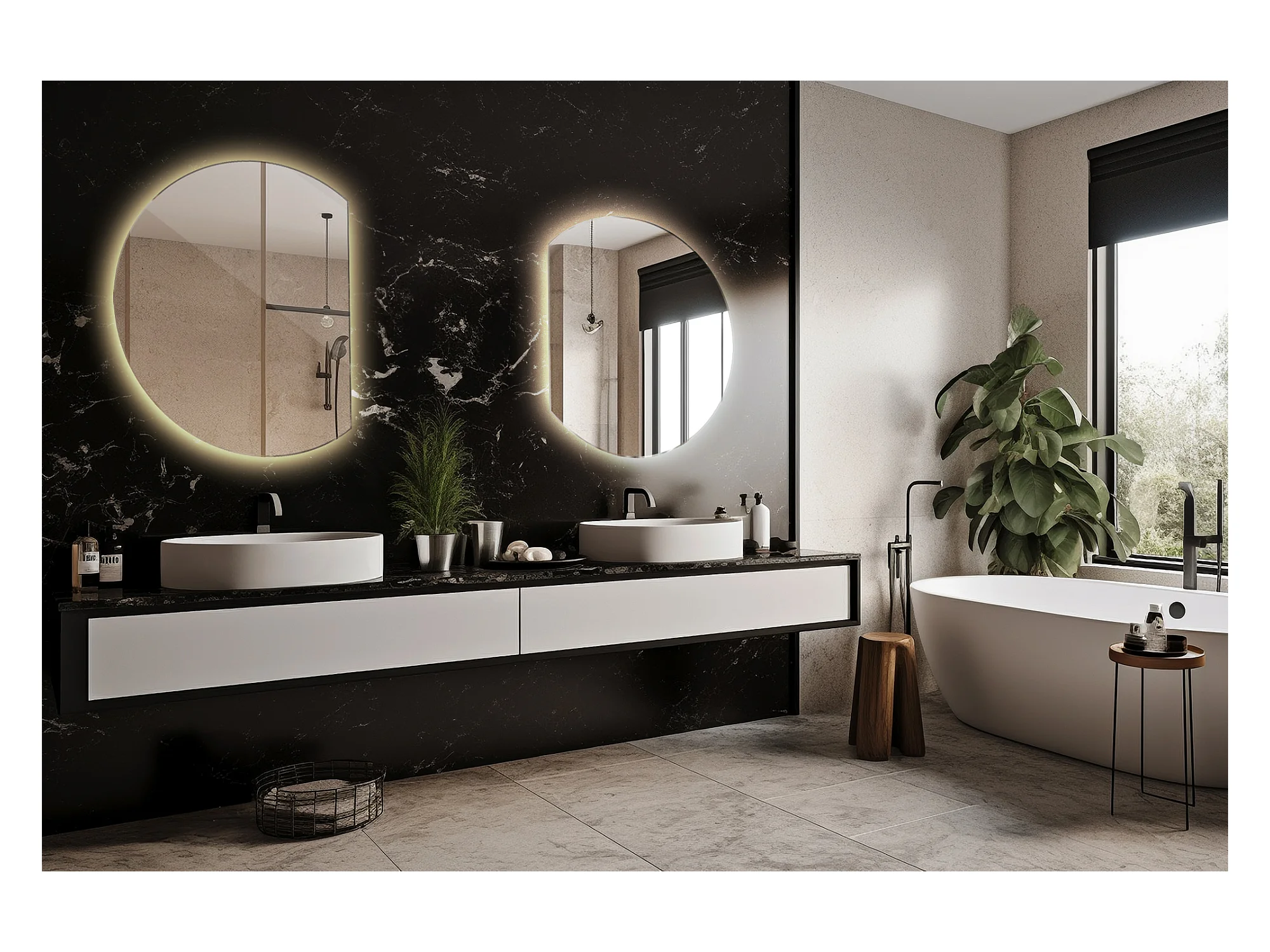 Runder abgeschrägter Spiegel, moderner Spiegel mit LED-Hintergrundbeleuchtung – 100 cm – warmes Licht