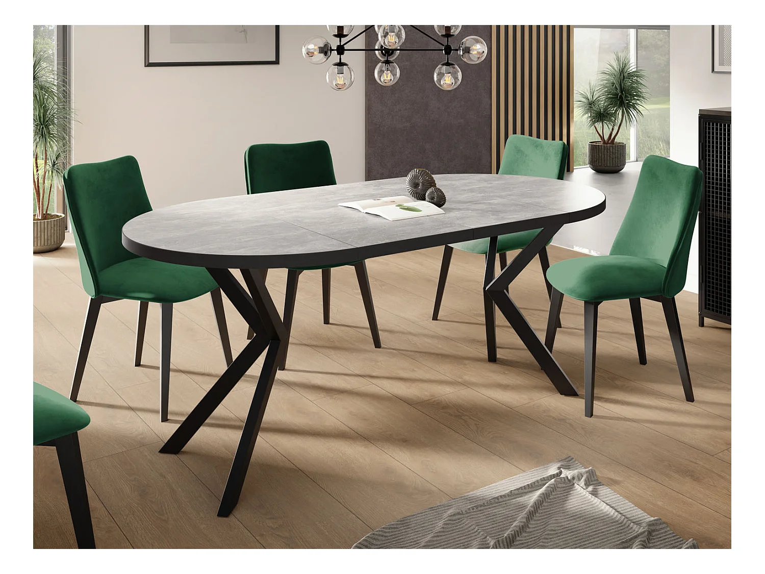 Runder Ausziehbar Tisch für das Esszimmer - Tischrand Schwarzes Dekor - 100 oder 120 cm - Ausziehbarer Tisch mit Schwarzen Metallbeinen - 100 cm - Beton Grau