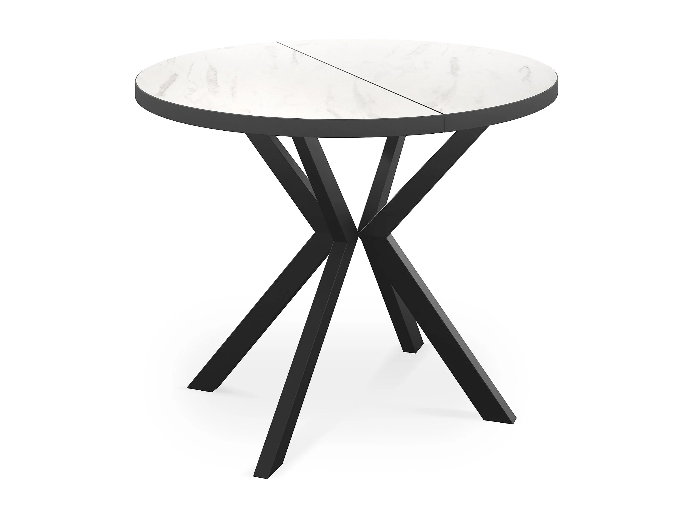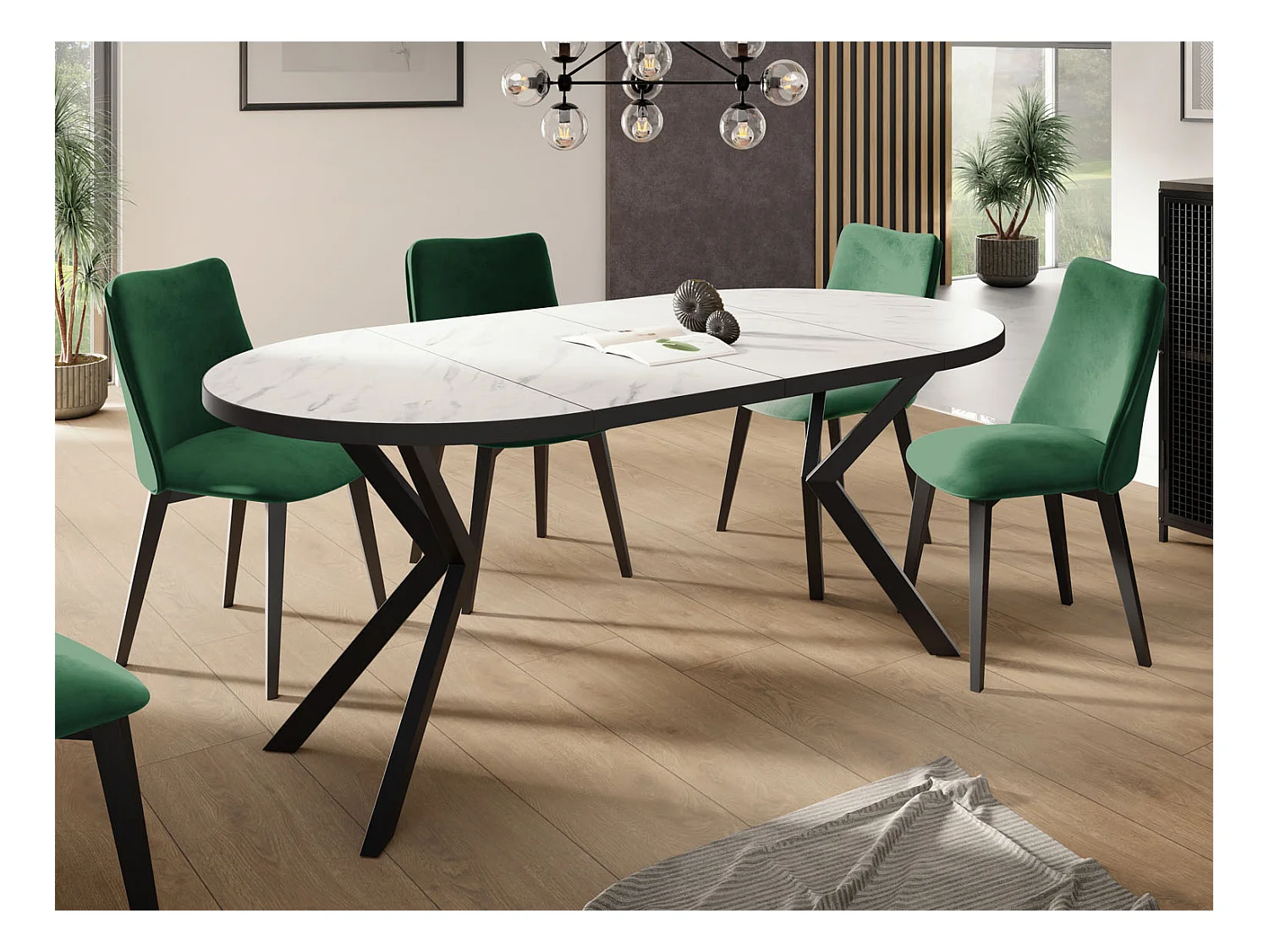 Runder Ausziehbar Tisch für das Esszimmer - Tischrand Schwarzes Dekor - 100 oder 120 cm - Ausziehbarer Tisch mit Schwarzen Metallbeinen - 120 cm - Marmor Weiß