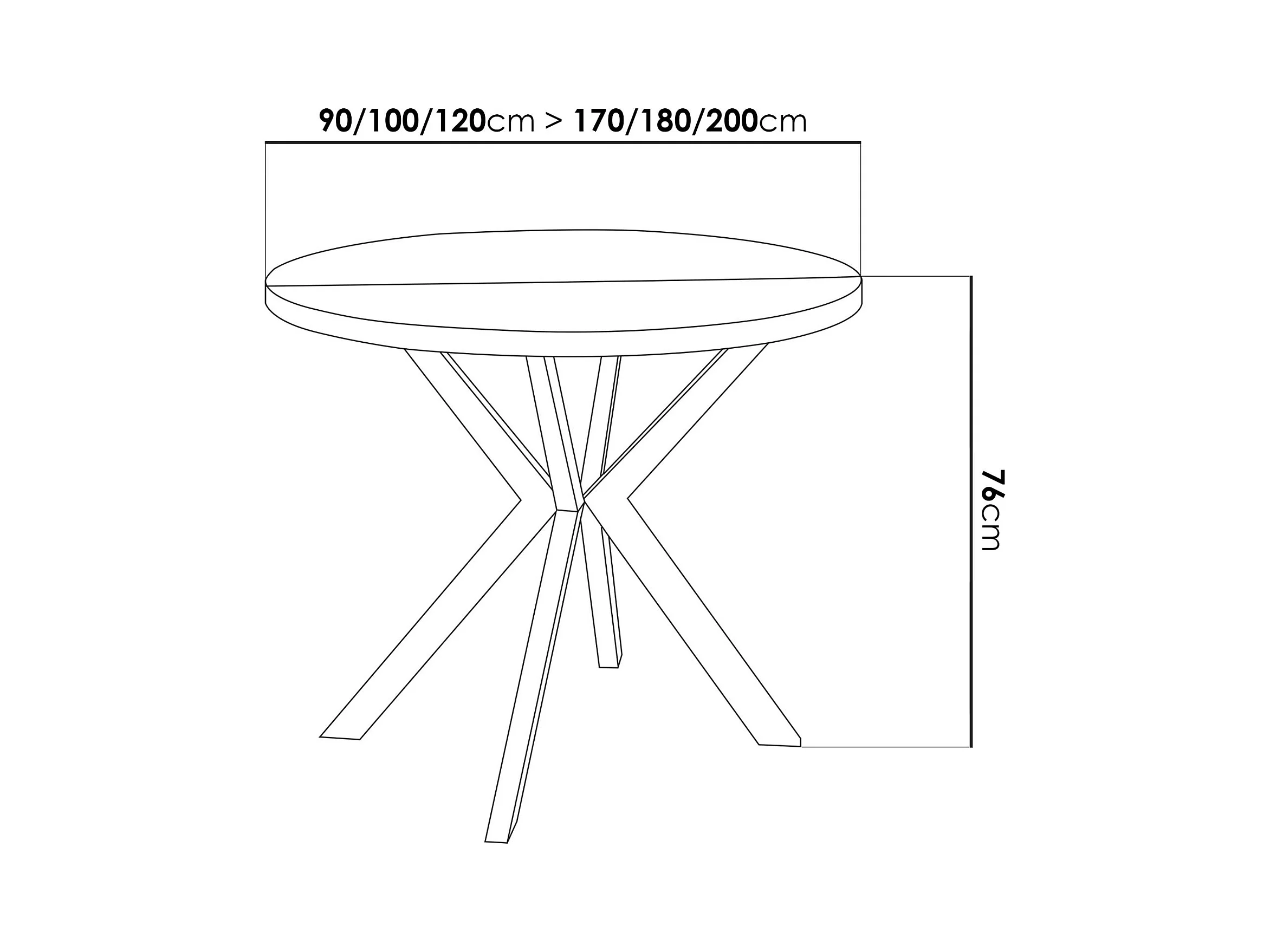 Runder Ausziehbarer Esstisch für 6-8 Personen - Loft Style Tisch mit Weißen Metallbeinen - 120 bis 200 cm - Industrieller Tisch für Wohnzimmer - Schwarz - 120 cm
