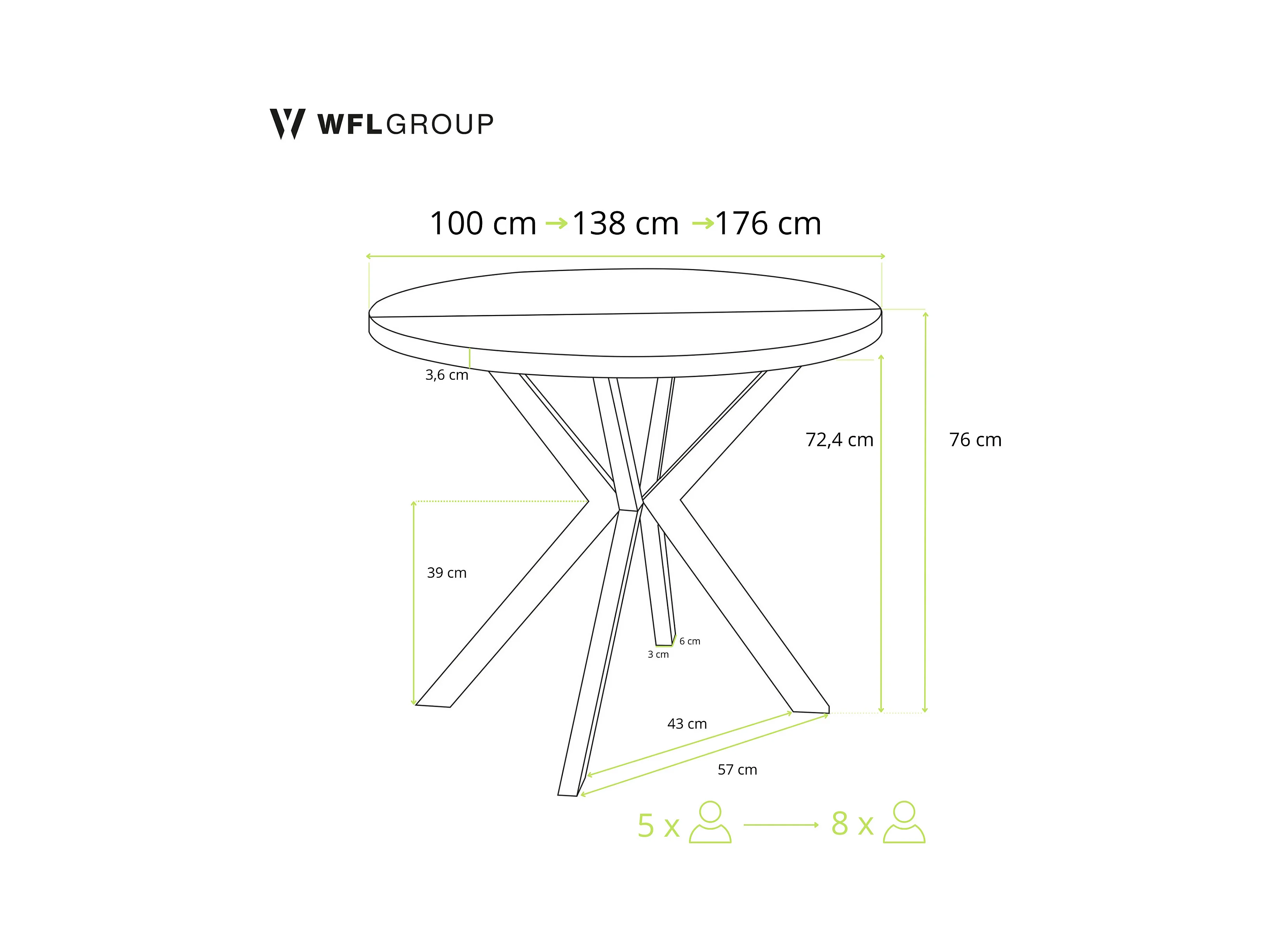 Runder Ausziehbarer Esstisch für 6-10 Personen - Loft Style Tisch mit Weiß Metallbeinen - 90 bis 120 cm - Industrieller Tisch für Wohnzimmer - Cemento Grau - 100 cm