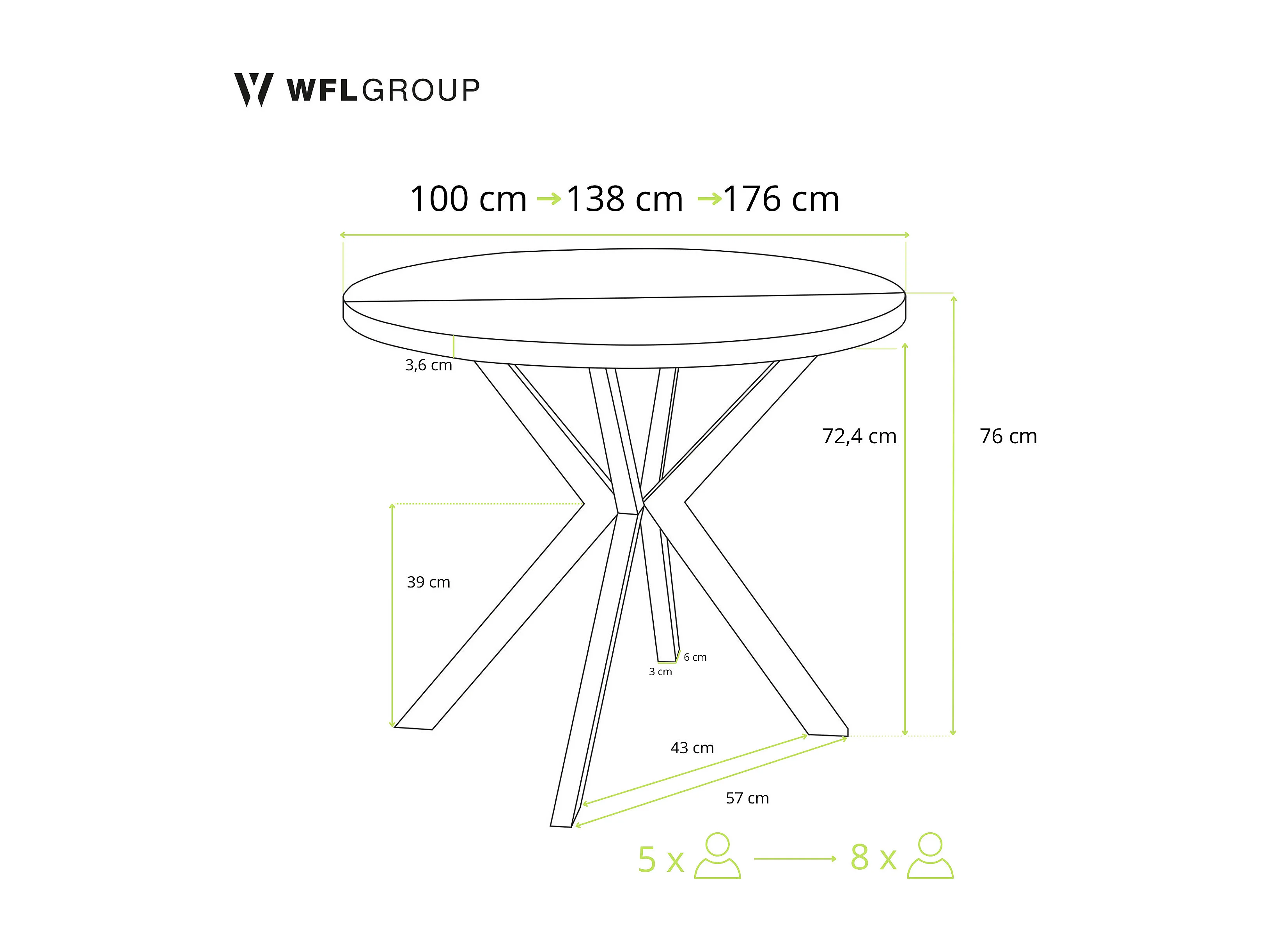 Runder Ausziehbarer Esstisch für 6-10 Personen - Loft Style Tisch mit Weißen Metallbeinen - 90 bis 120 cm - Industrieller Tisch für Wohnzimmer - Craft Eiche - 10...