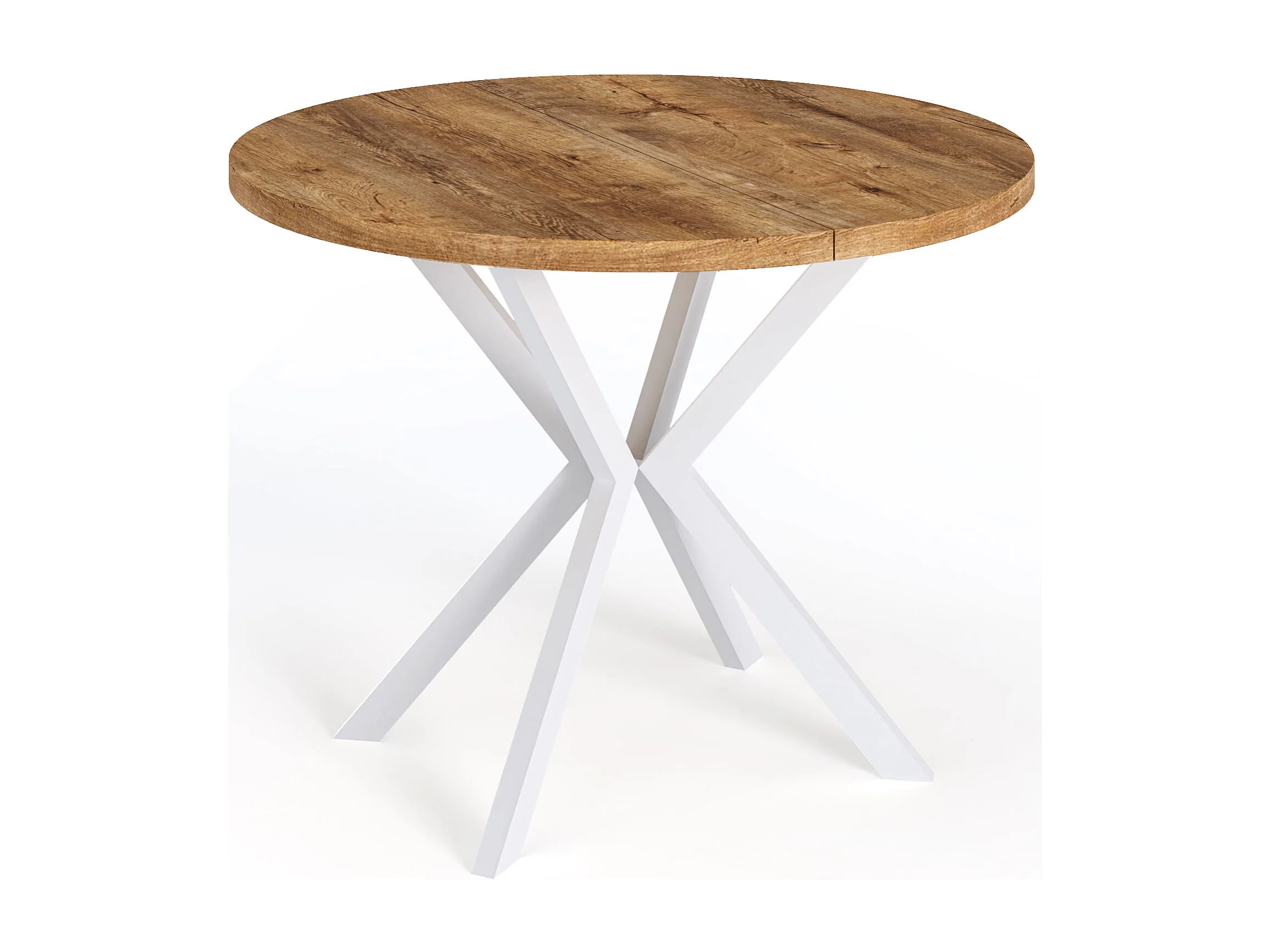 Runder Ausziehbarer Esstisch für 6-10 Personen - Loft Style Tisch mit Weiß Metallbeinen - 90 bis 120 cm - Industrieller Tisch für Wohnzimmer - Lefkas Eiche - 100 cm