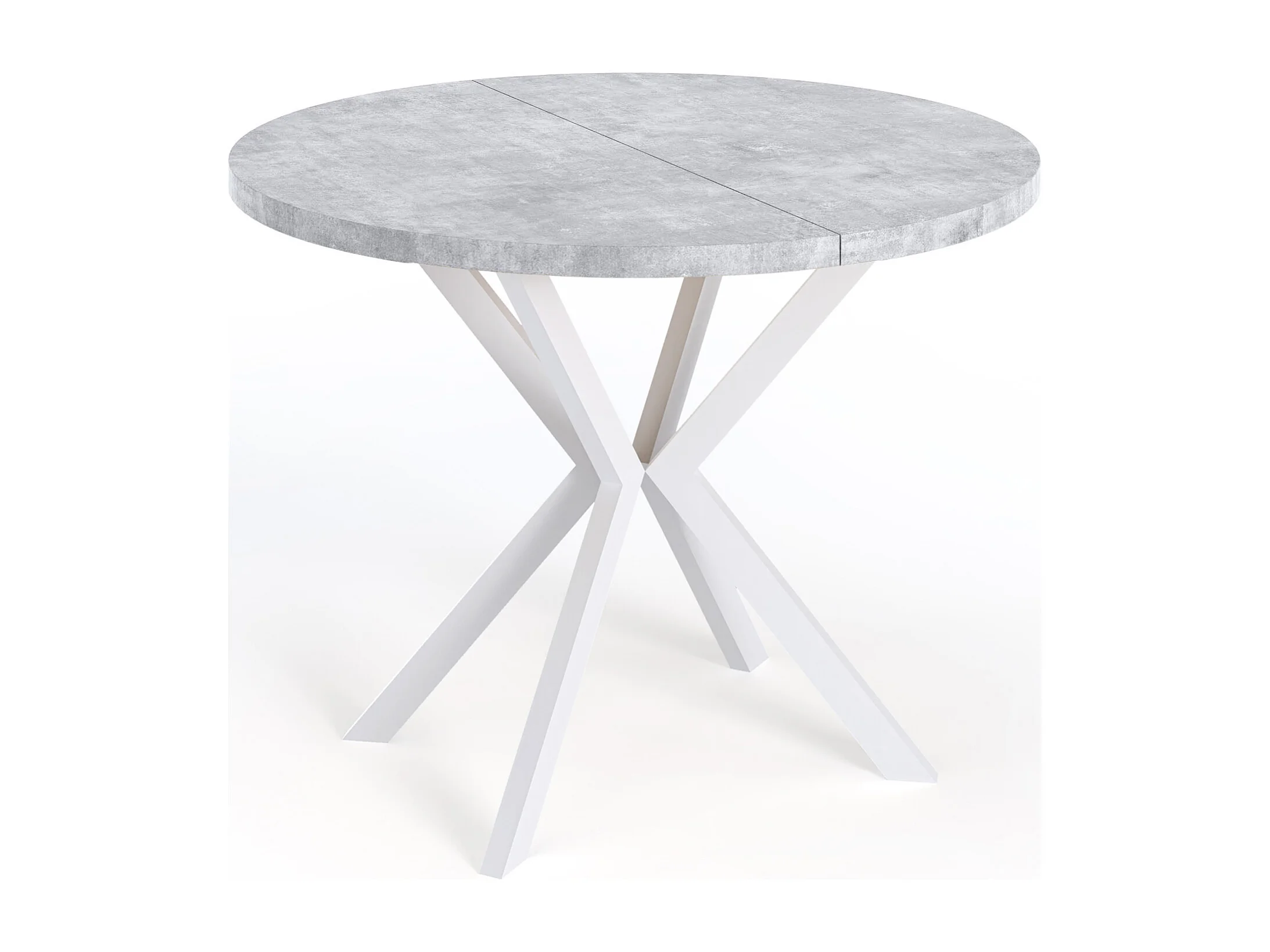 Runder Ausziehbarer Esstisch für 8-12 Personen - Loft Style Tisch mit Weißen Metallbeinen - 120 bis 200 cm - Industrieller Tisch für Wohnzimmer - Grauer Beton - ...