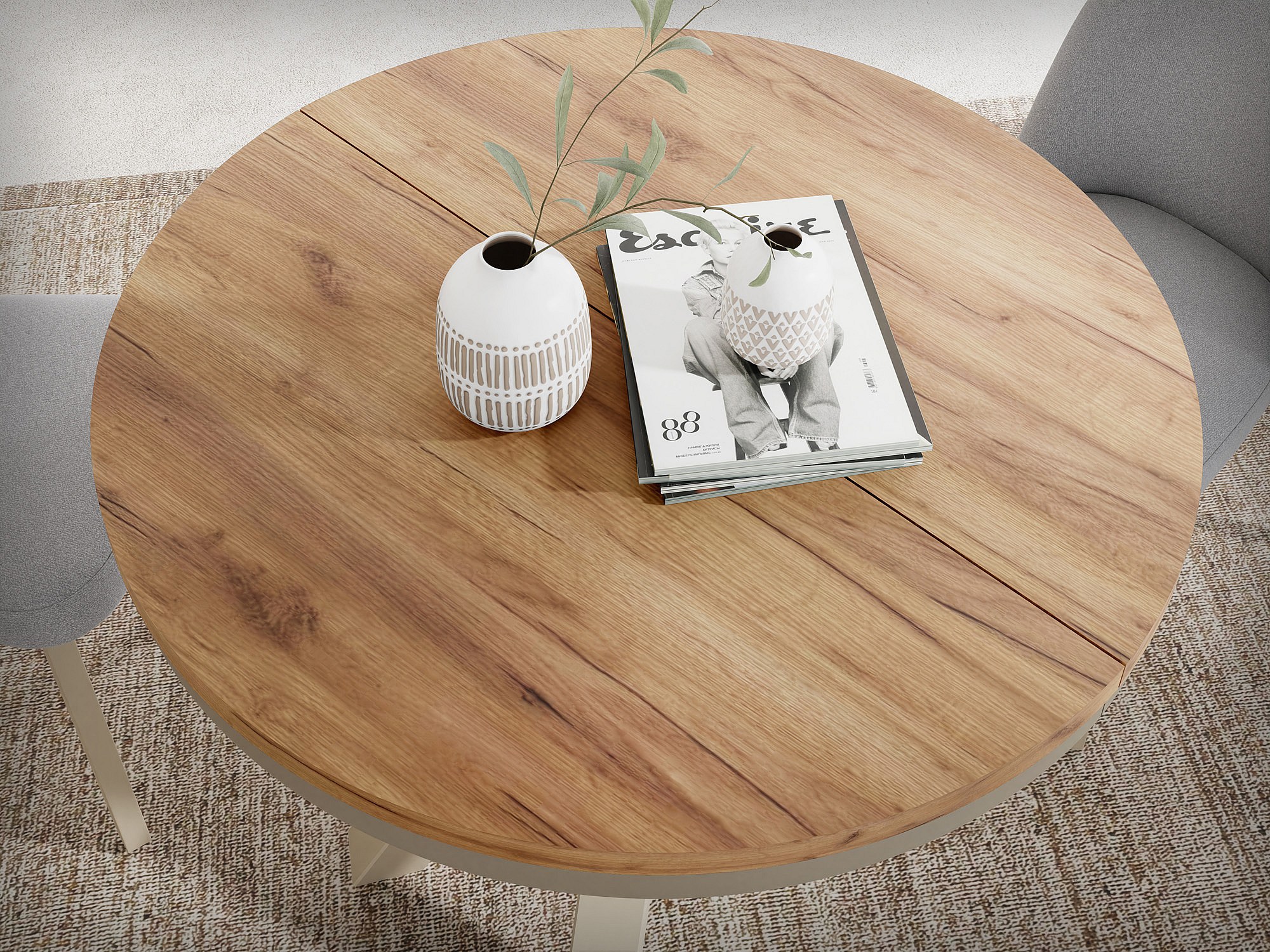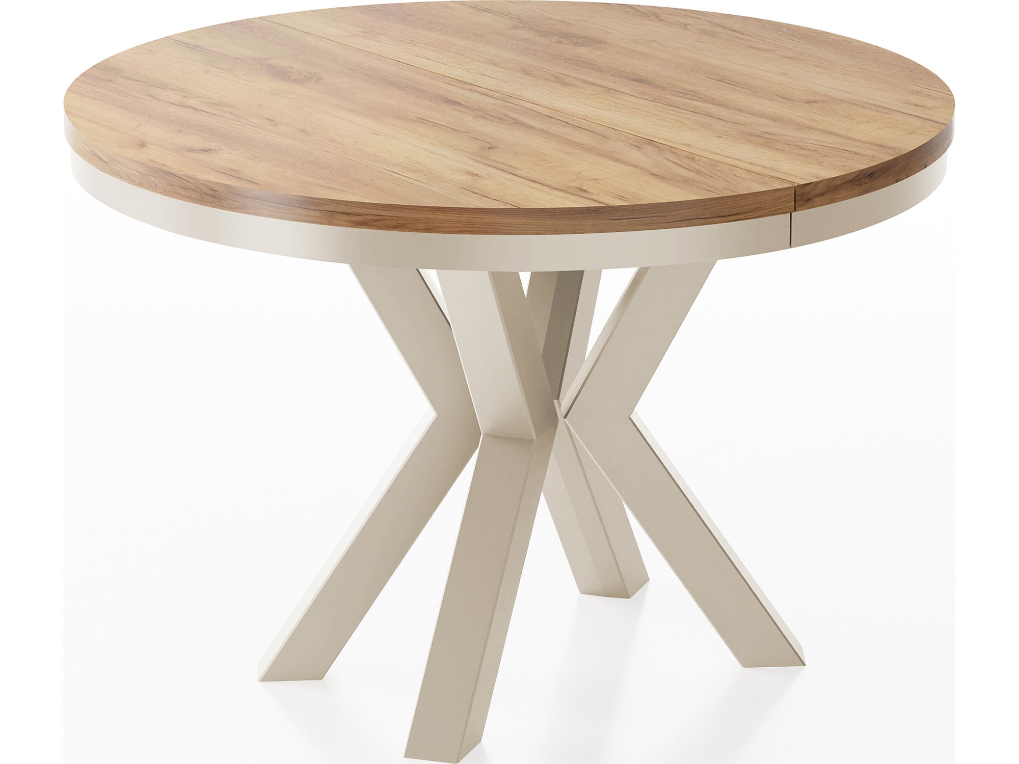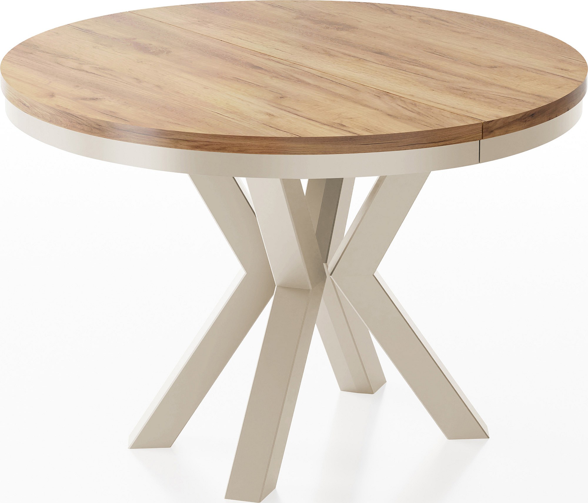 Runder Ausziehbarer Esstisch im Loft-Stil - Industrieller Tisch mit Beige Cashmere Metallbeinen - Platzsparender Tisch für Wohnzimmer - Craft Eiche - 120 bis 200 cm