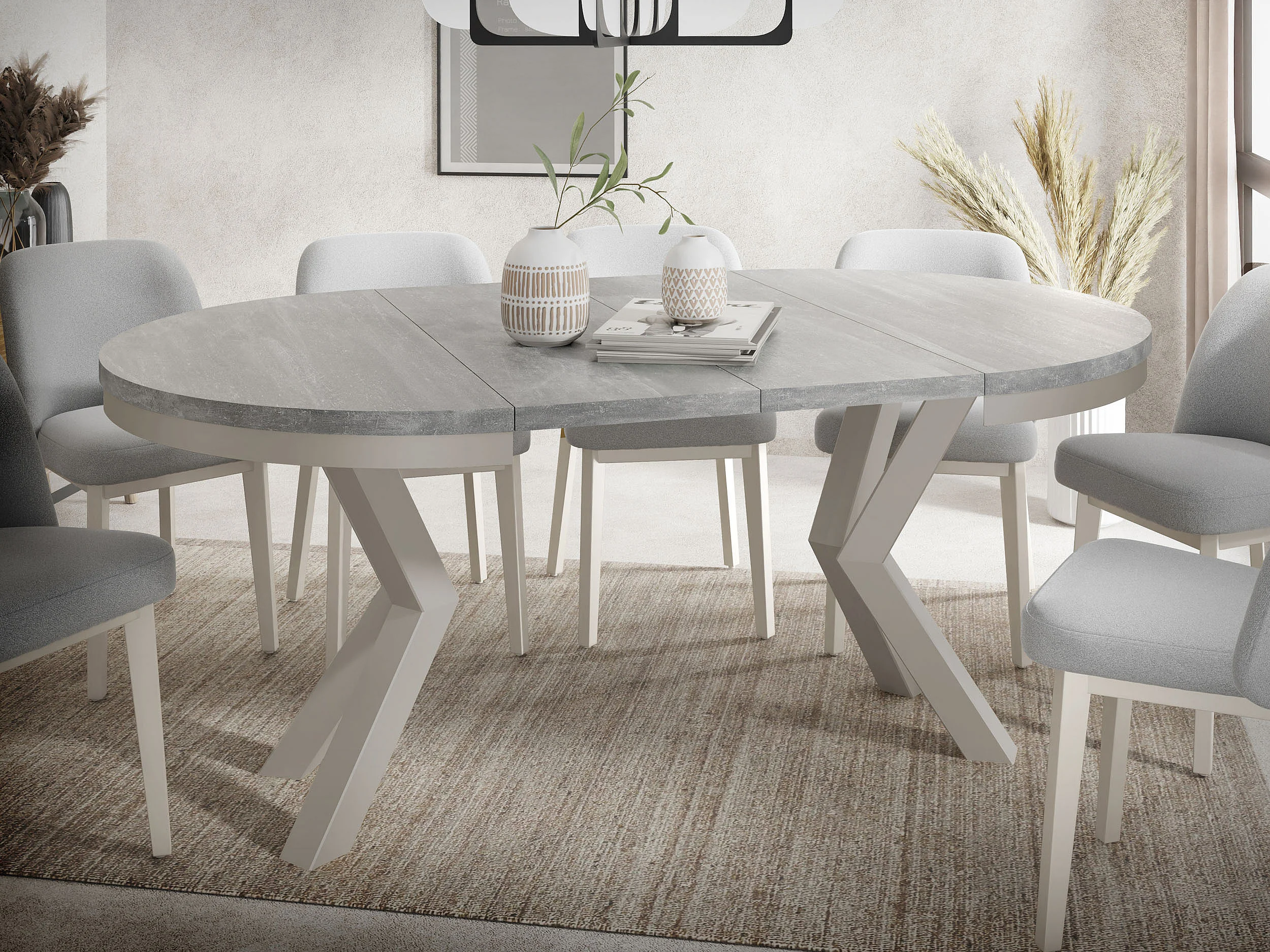 Runder Ausziehbarer Esstisch im Loft-Stil - Industrieller Tisch mit Grau-Beige Metallbeinen - Platzsparender Tisch für Wohnzimmer - Grauer Beton 100 bis 180 cm