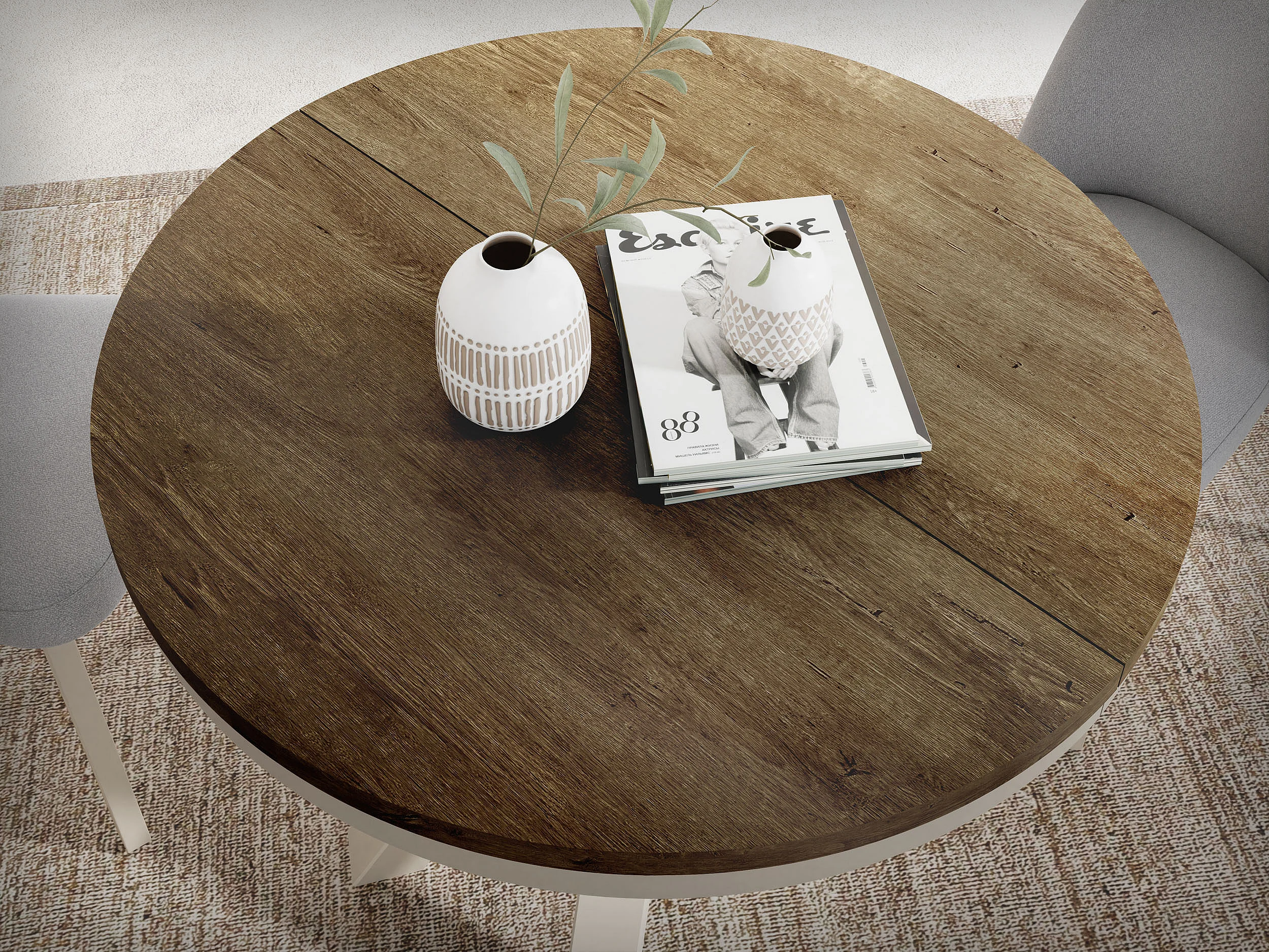 Runder Ausziehbarer Esstisch im Loft-Stil - Industrieller Tisch mit Grau-Beige Metallbeinen - Platzsparender Tisch für Wohnzimmer - Lefkas Eiche 120 bis 200 cm