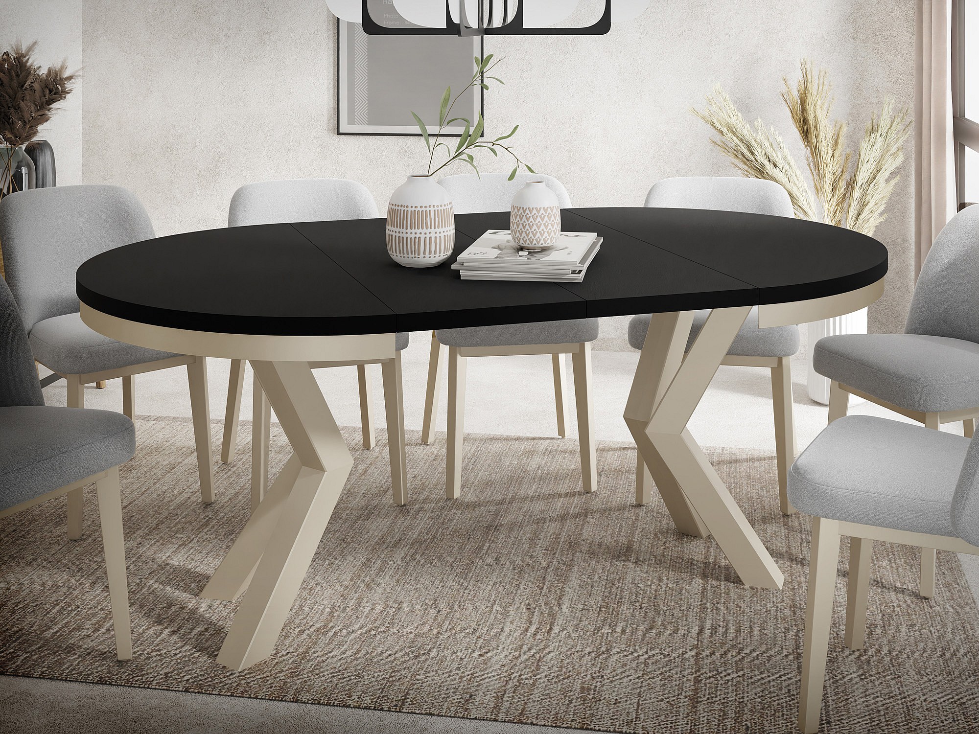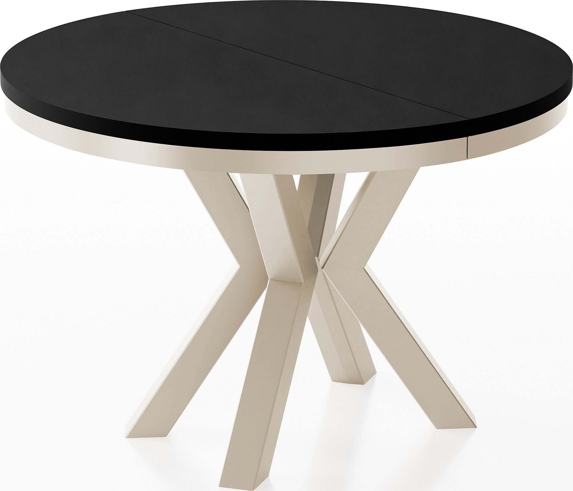 Runder Ausziehbarer Esstisch im Loft-Stil - Industrieller Tisch mit Beige Cashmere Metallbeinen - Platzsparender Tisch für Wohnzimmer - Schwarz - 100 bis 180 cm