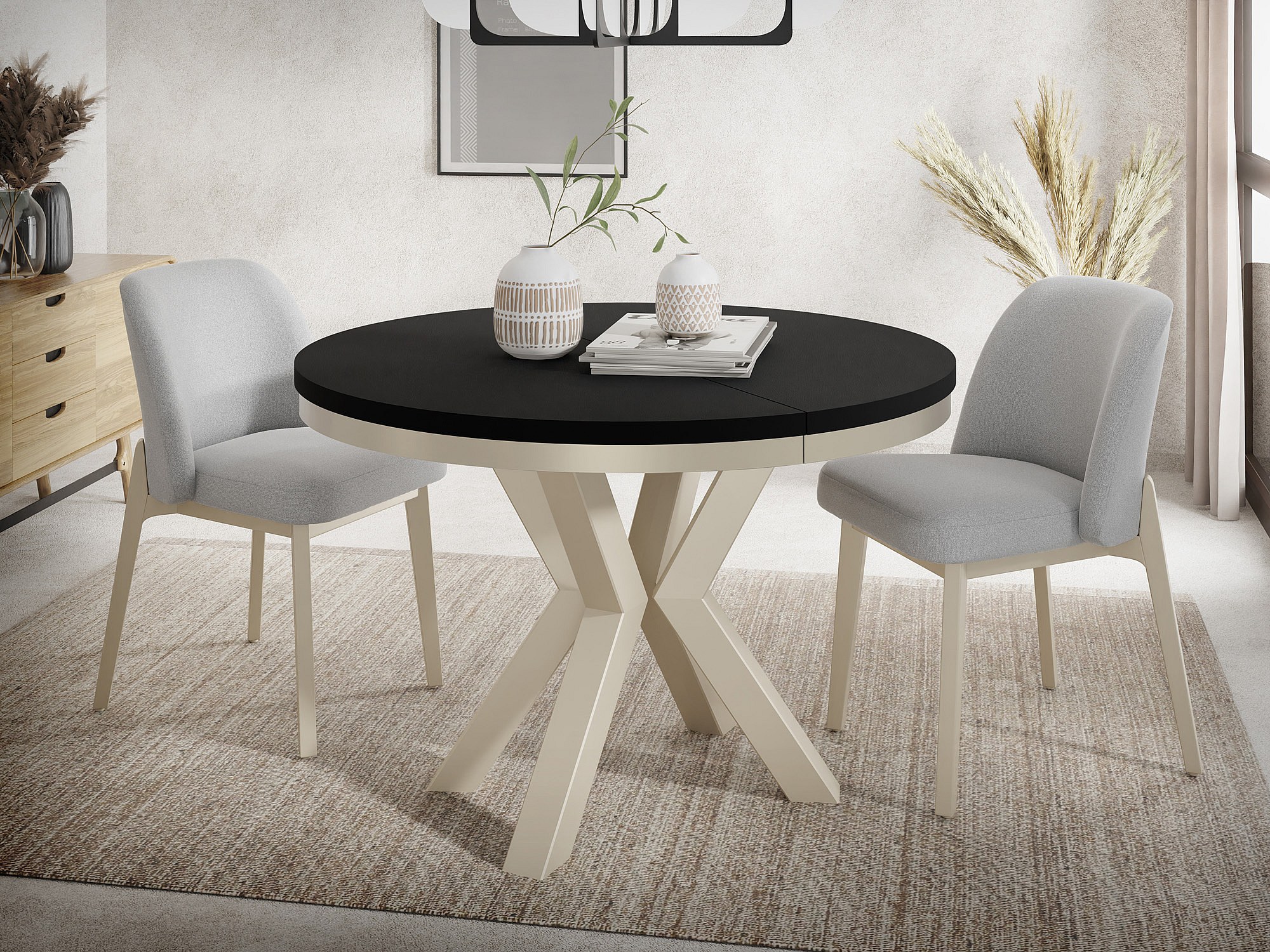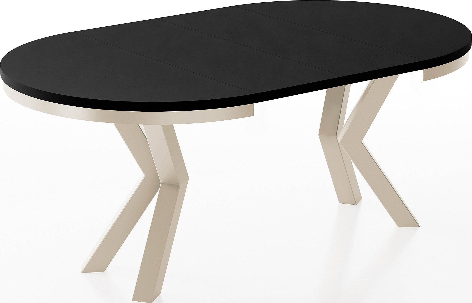 Runder Ausziehbarer Esstisch im Loft-Stil - Industrieller Tisch mit Beige Cashmere Metallbeinen - Platzsparender Tisch für Wohnzimmer - Schwarz - 120 bis 200 cm
