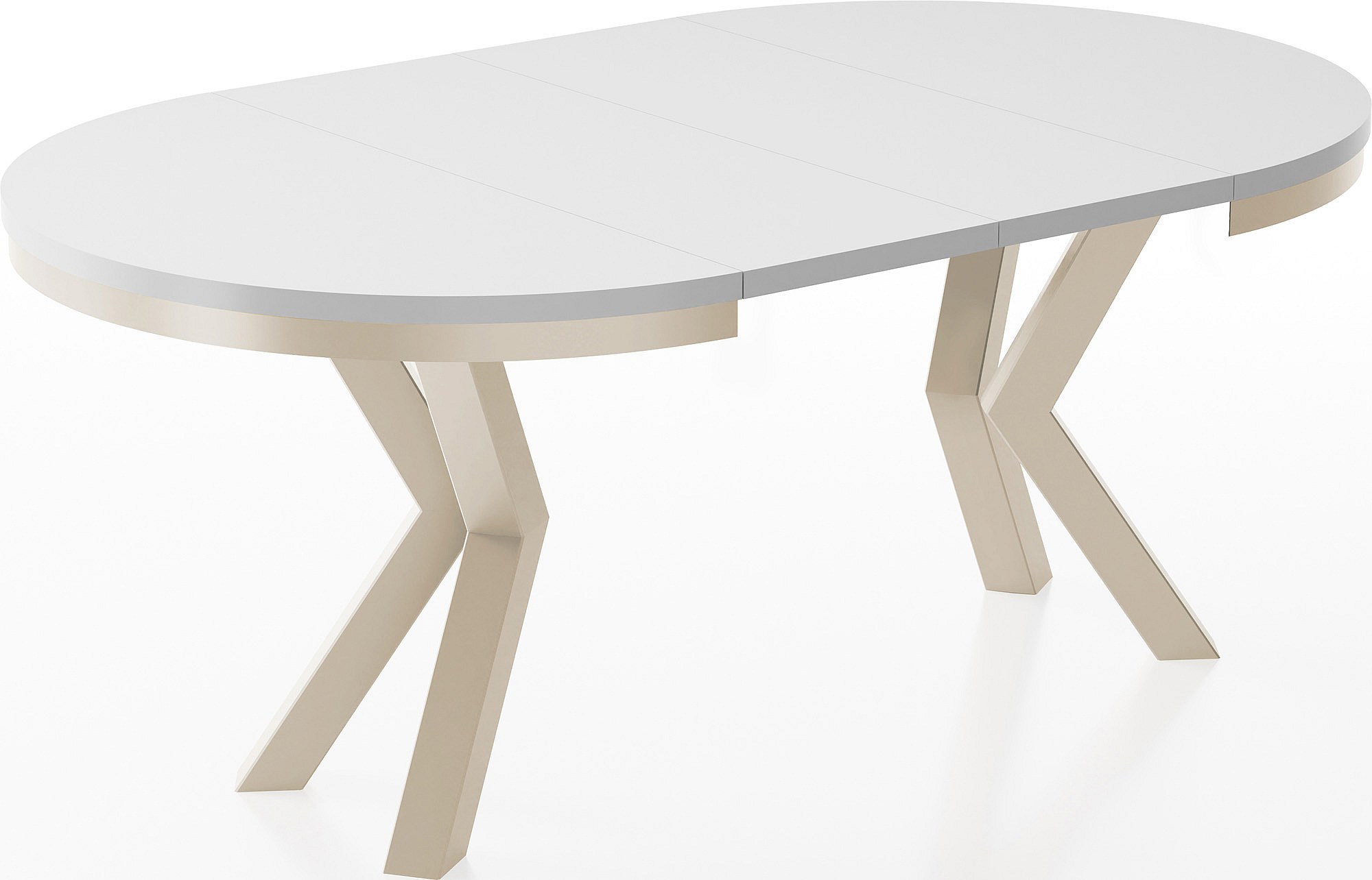 Runder Ausziehbarer Esstisch im Loft-Stil - Industrieller Tisch mit Beige Cashmere Metallbeinen - Platzsparender Tisch für Wohnzimmer - Weiß - 100 bis 180 cm
