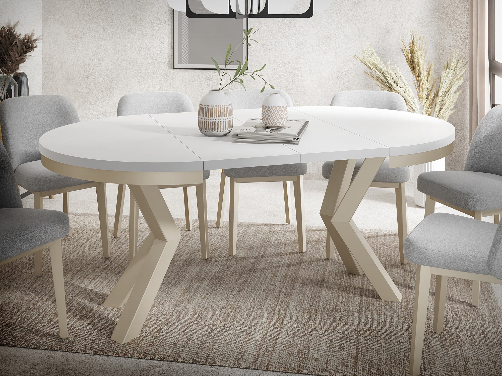 Runder Ausziehbarer Esstisch im Loft-Stil - Industrieller Tisch mit Beige Cashmere Metallbeinen - Platzsparender Tisch für Wohnzimmer - Weiß 120 bis 200 cm