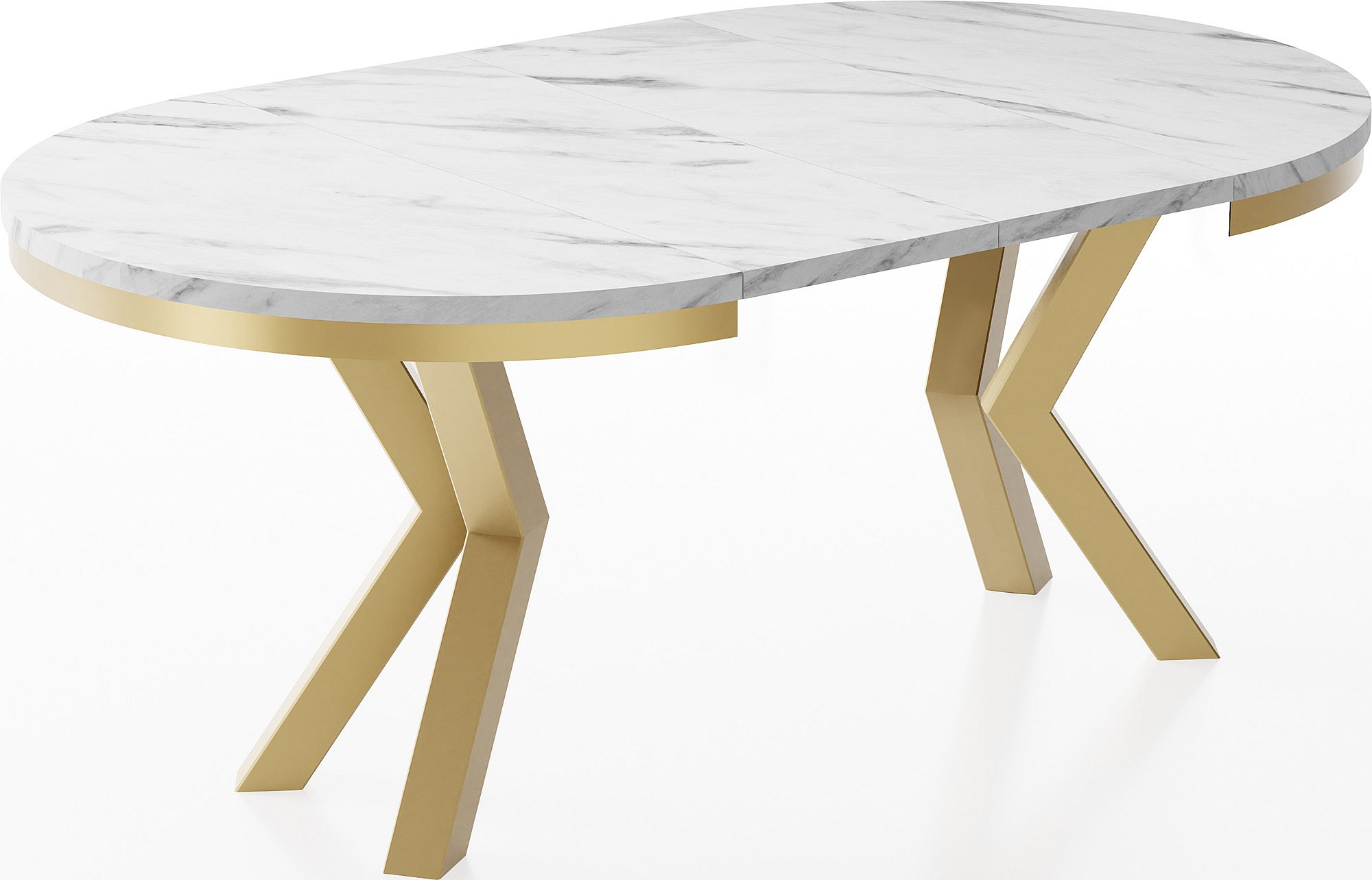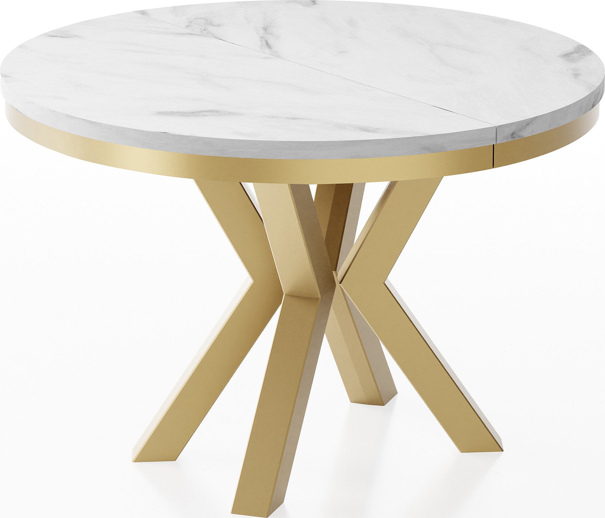 Runder Ausziehbarer Esstisch im Loft-Stil - Industrieller Tisch mit Goldenen Metallbeinen - Platzsparender Tisch für Wohnzimmer - Marmor Weiß - 100 bis 180 cm