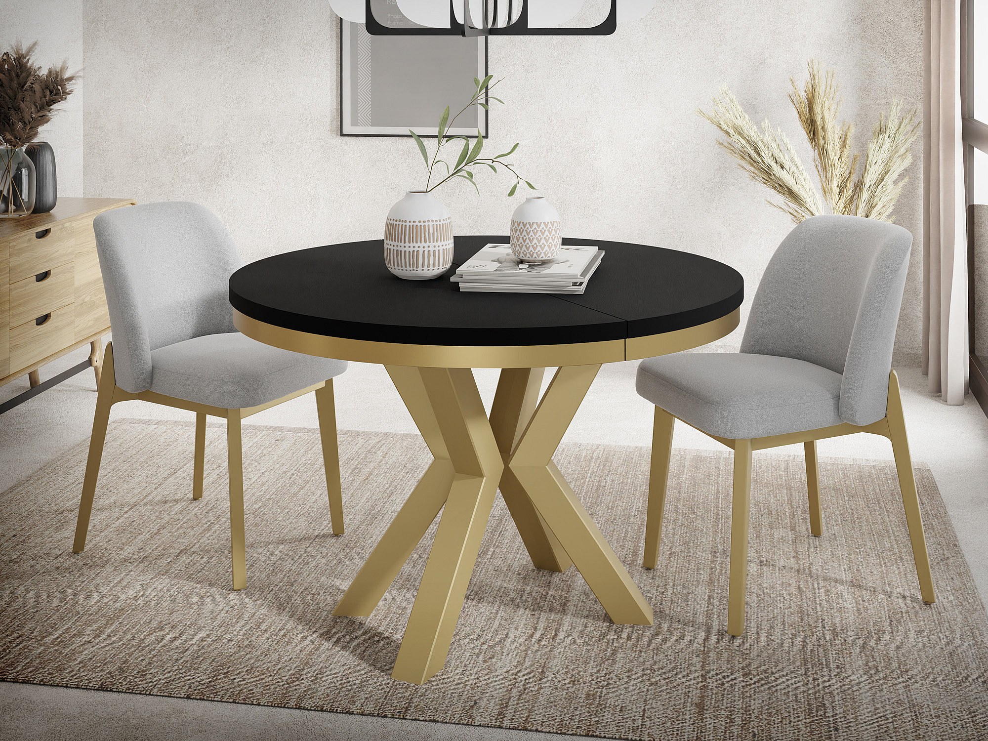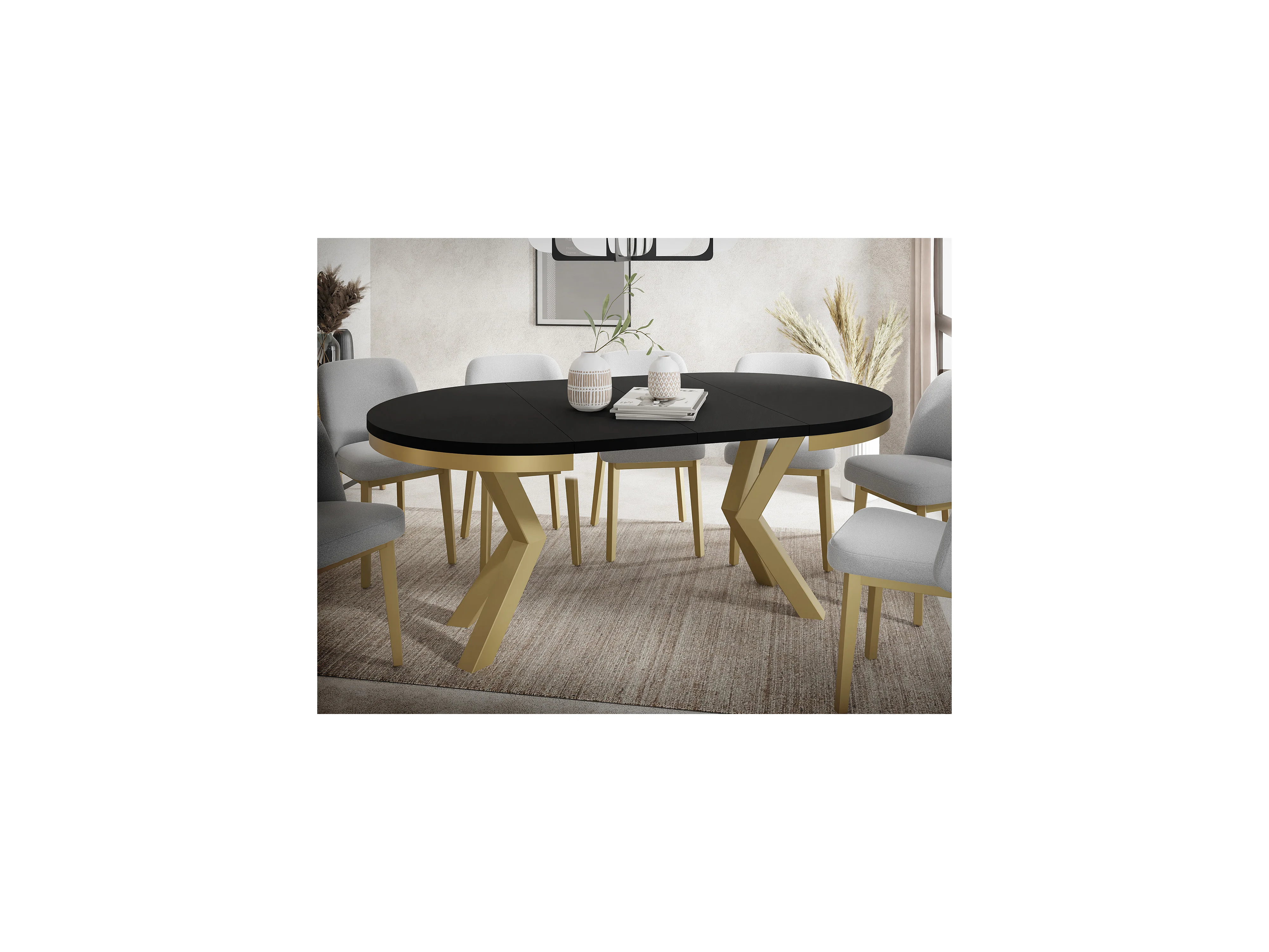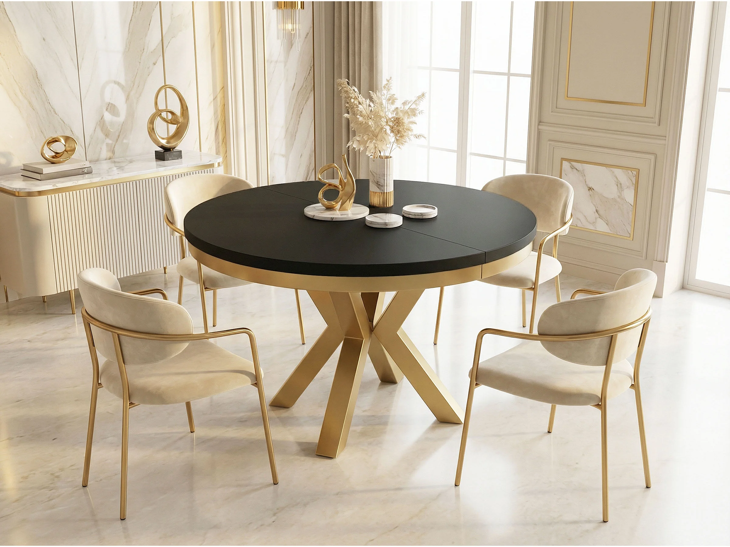 Runder Ausziehbarer Esstisch im Loft-Stil - Industrieller Tisch mit Goldenen Metallbeinen - Platzsparender Tisch für Wohnzimmer - Schwarz - 120 bis 200 cm