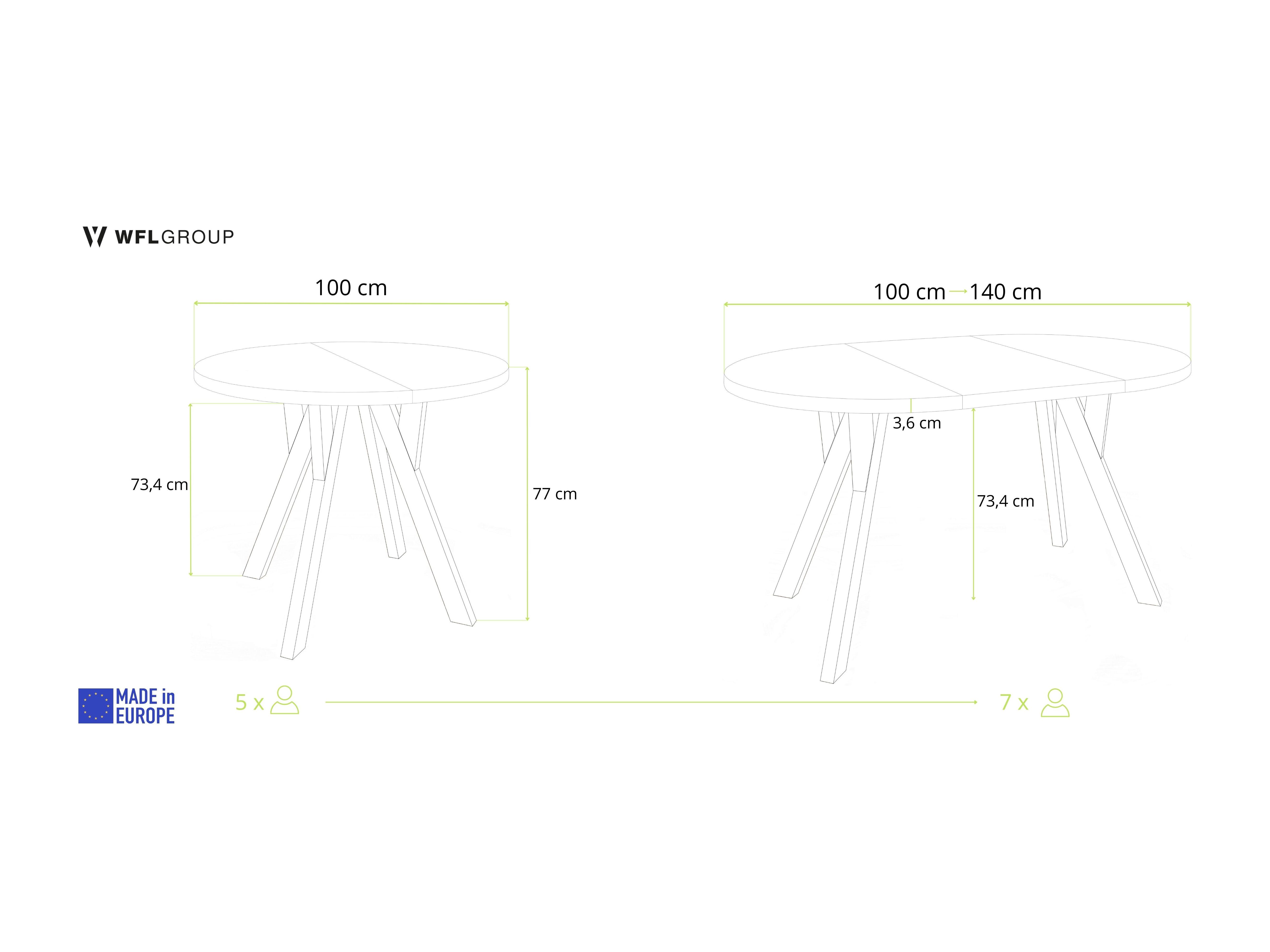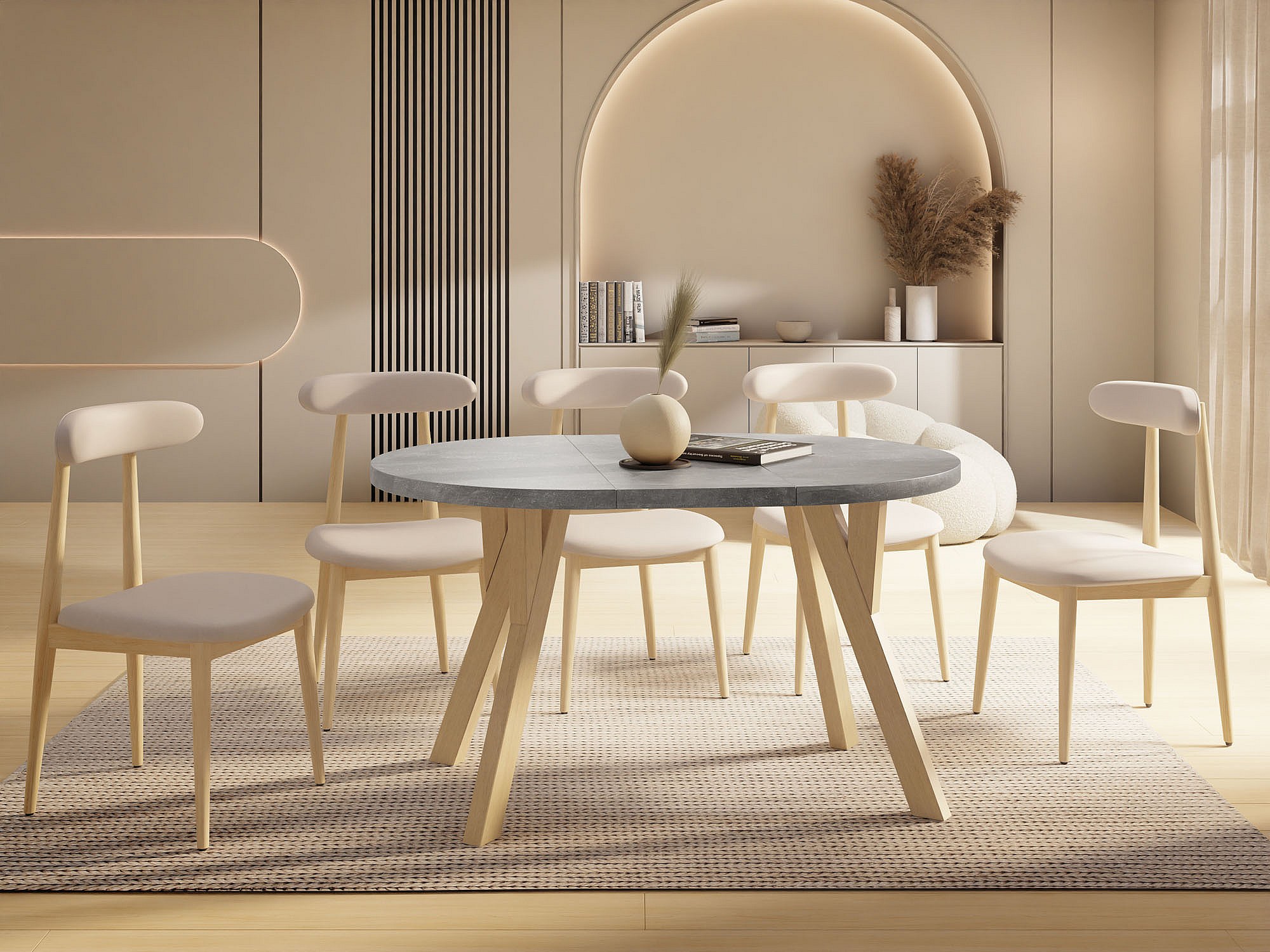 Runder Ausziehbarer Esstisch im Loft-Stil – Industrieller Tisch mit Holzbeinen – Platzsparender Tisch für Wohnzimmer – Beton Grau – 100 bis 140 cm