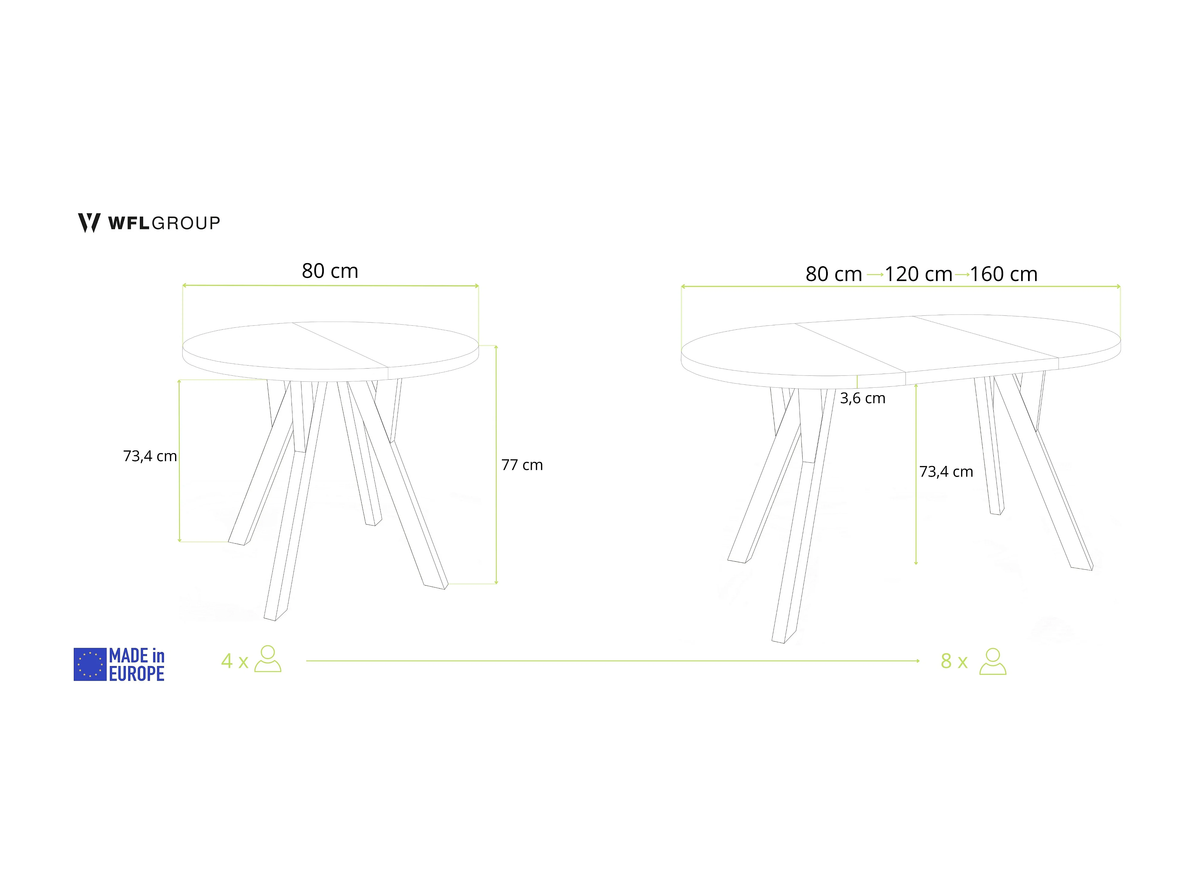 Runder Ausziehbarer Esstisch im Loft-Stil – Industrieller Tisch mit Holzbeinen – Platzsparender Tisch für Wohnzimmer – Beton Grau – 80 bis 160 cm