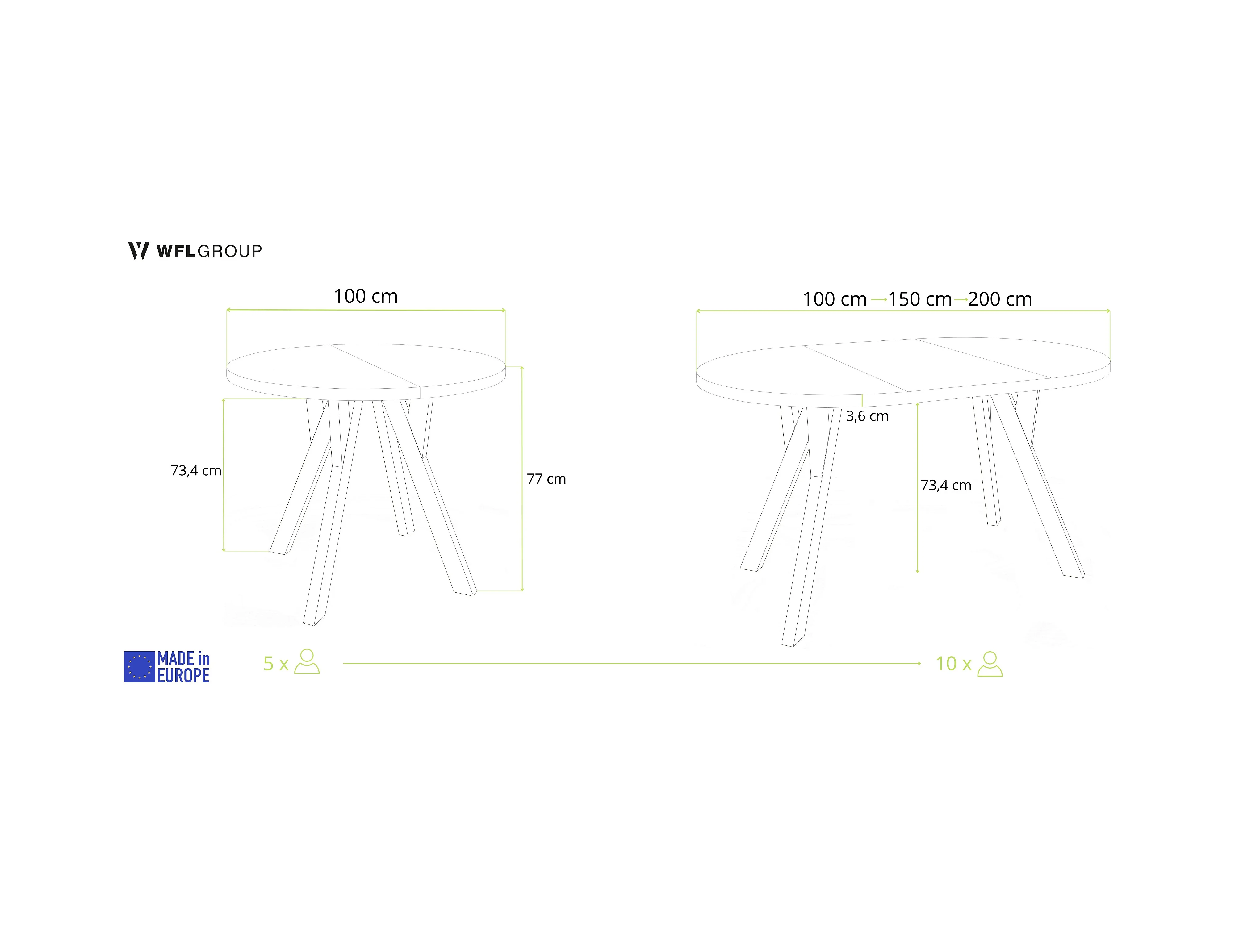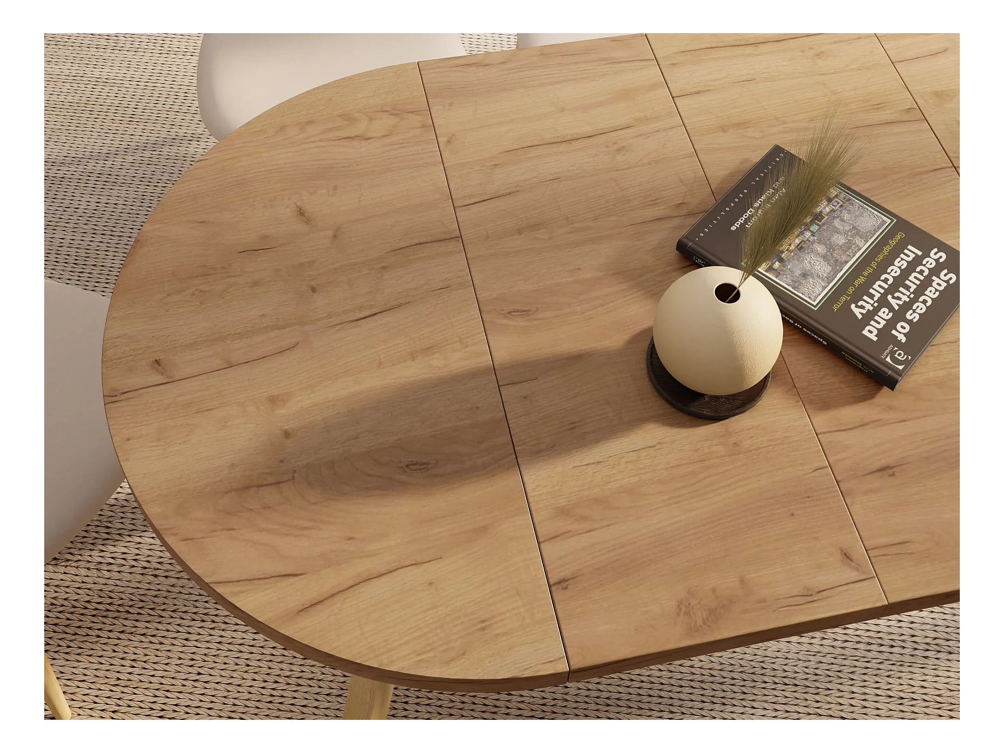 Runder Ausziehbarer Esstisch im Loft-Stil – Industrieller Tisch mit Holzbeinen – Platzsparender Tisch für Wohnzimmer – Eiche Craft Braun – 100 bis 200 cm