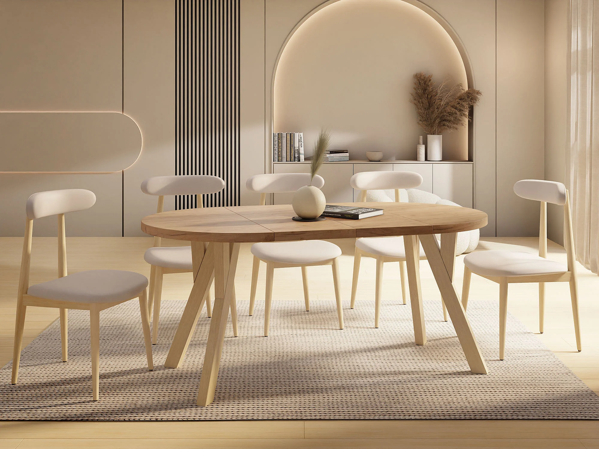Runder Ausziehbarer Esstisch im Loft-Stil – Industrieller Tisch mit Holzbeinen – Platzsparender Tisch für Wohnzimmer – Eiche Craft Braun – 90 bis 190 cm
