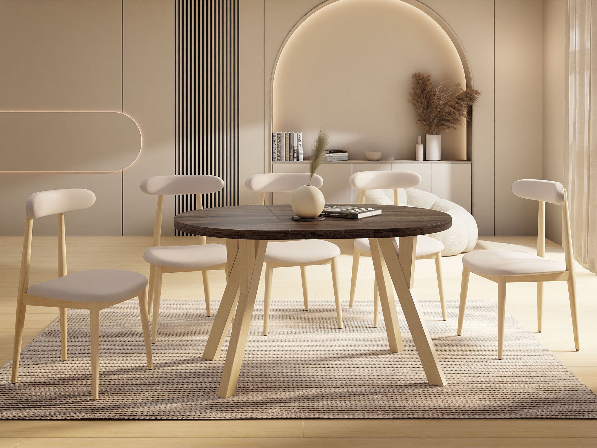 Runder Ausziehbarer Esstisch im Loft-Stil – Industrieller Tisch mit Holzbeinen – Platzsparender Tisch für Wohnzimmer – Eiche Sonoma Dunkelbraun – 100 bis 140 cm