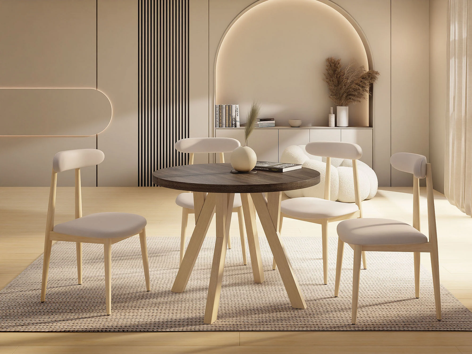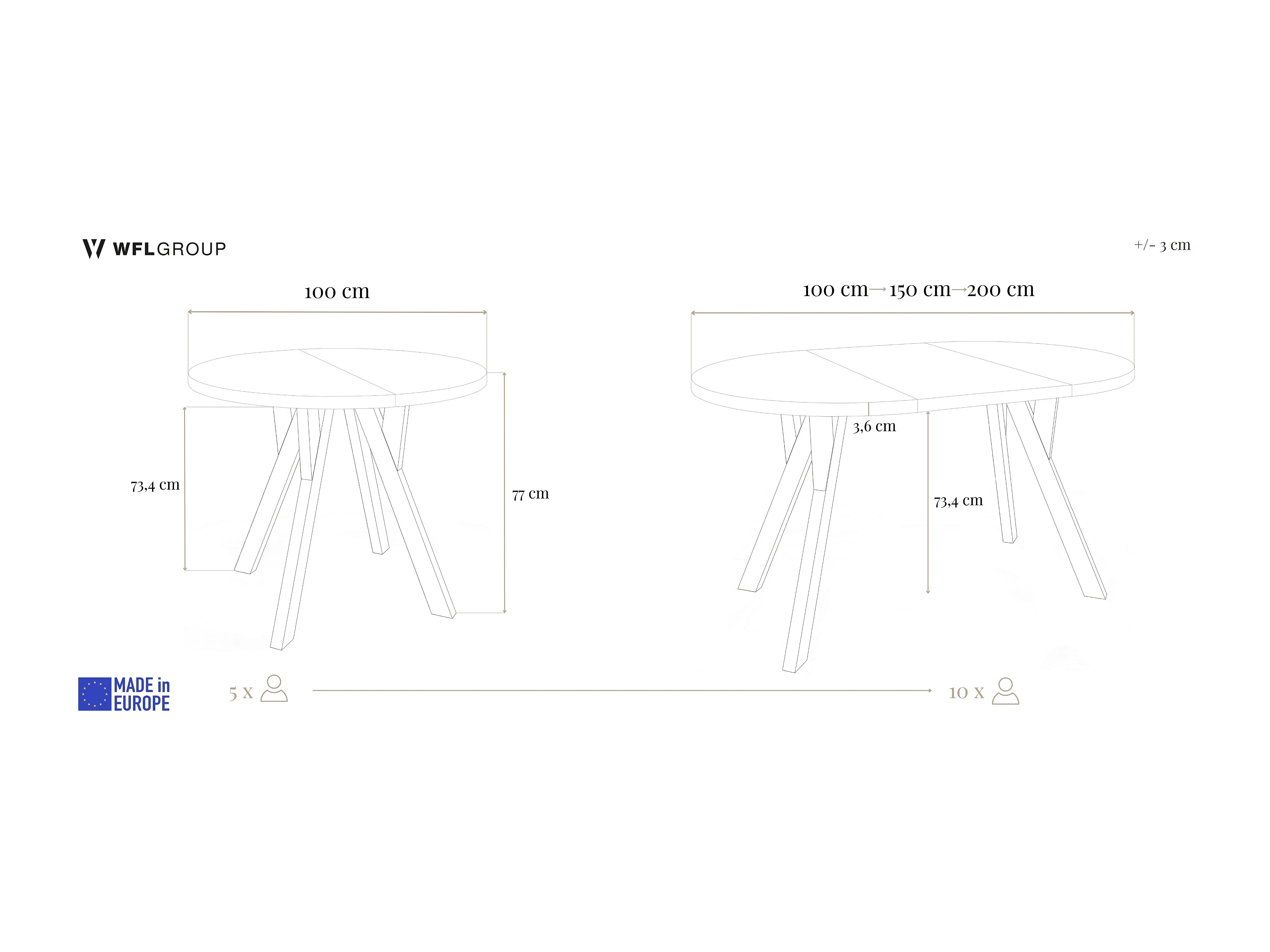 Runder Ausziehbarer Esstisch im Loft-Stil – Industrieller Tisch mit Holzbeinen – Platzsparender Tisch für Wohnzimmer – Eiche Sonoma Dunkelbraun – 100 bis 200 cm