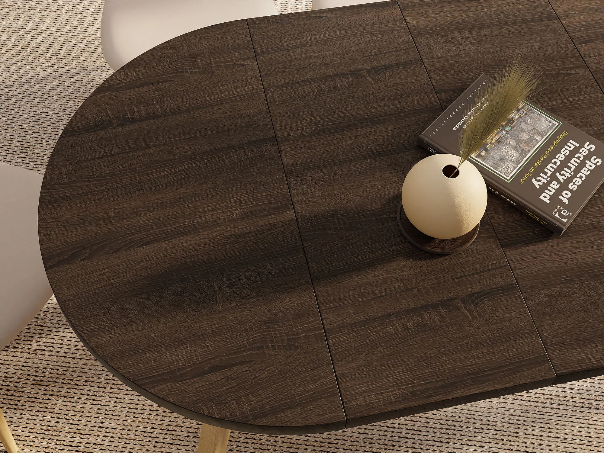 Runder Ausziehbarer Esstisch im Loft-Stil – Industrieller Tisch mit Holzbeinen – Platzsparender Tisch für Wohnzimmer – Eiche Sonoma Dunkelbraun – 90 bis 190 cm