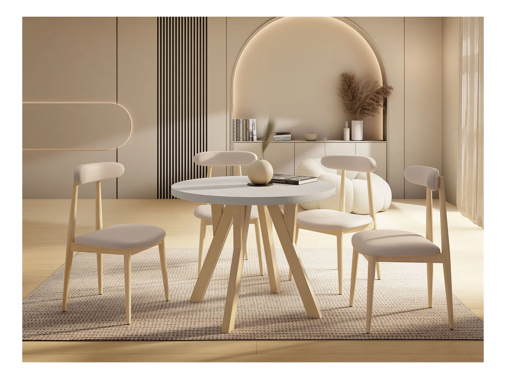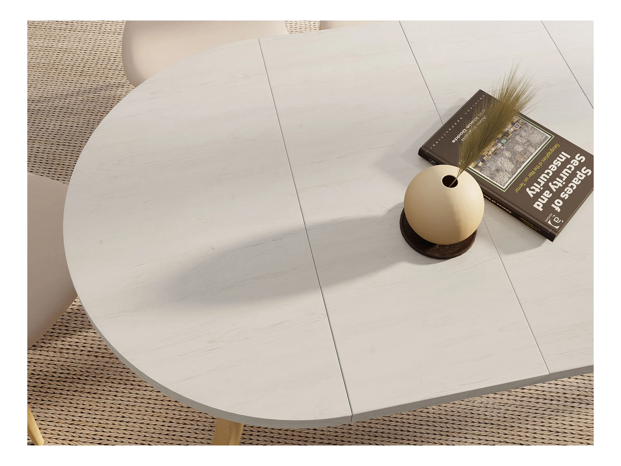 Runder Ausziehbarer Esstisch im Loft-Stil – Industrieller Tisch mit Holzbeinen – Platzsparender Tisch für Wohnzimmer – Kiefer Weiß – 90 bis 190 cm