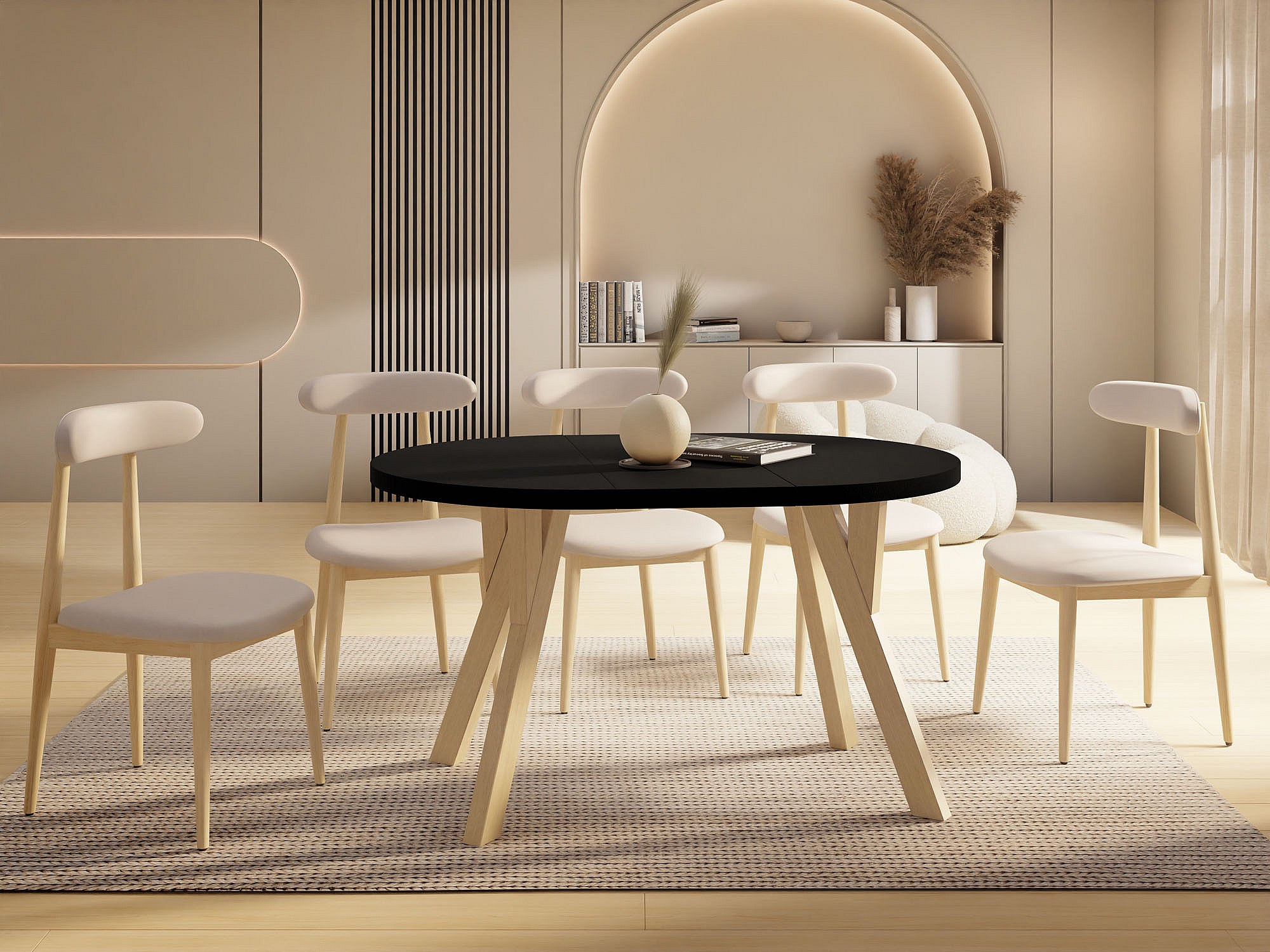Runder Ausziehbarer Esstisch im Loft-Stil – Industrieller Tisch mit Holzbeinen – Platzsparender Tisch für Wohnzimmer – Schwarz – 100 bis 140 cm