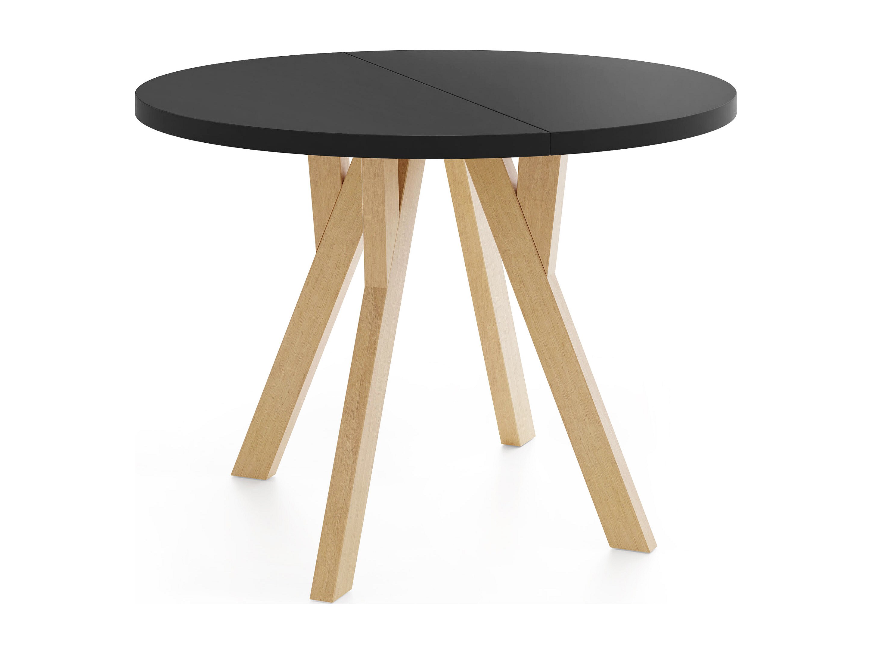 Runder Ausziehbarer Esstisch im Loft-Stil – Industrieller Tisch mit Holzbeinen – Platzsparender Tisch für Wohnzimmer – Schwarz – 100 bis 200 cm