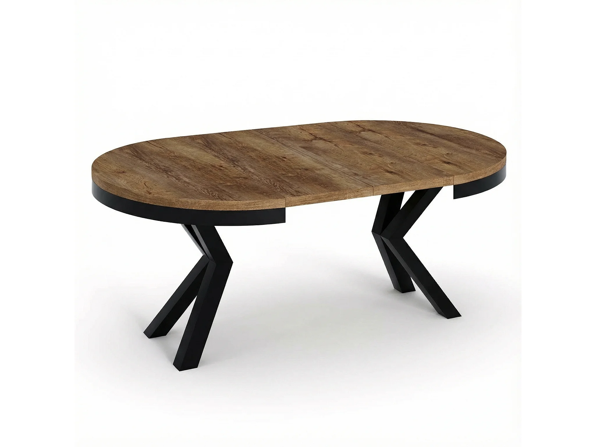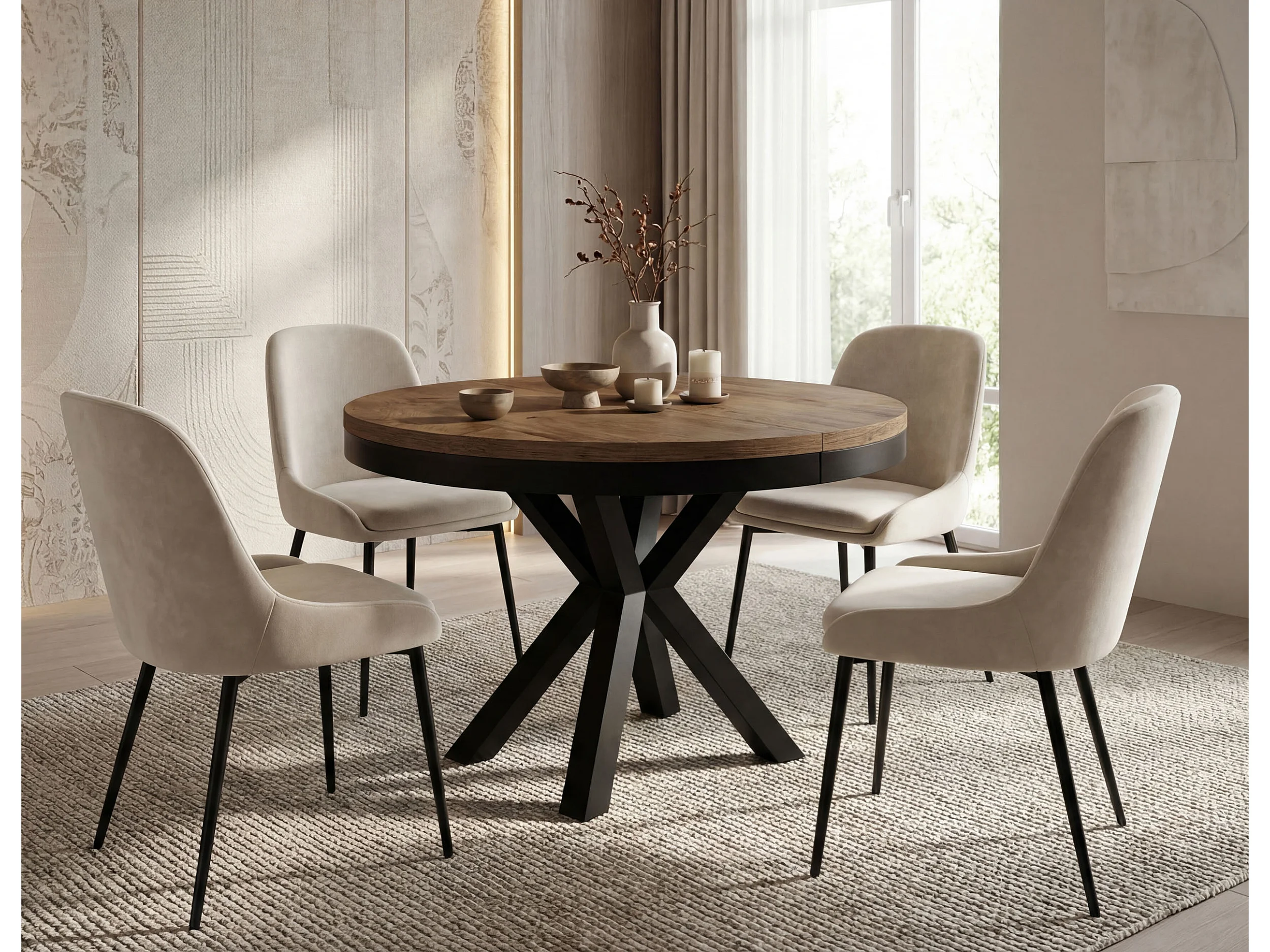 Runder Ausziehbarer Esstisch im Loft-Stil - Industrieller Tisch mit Schwarzen Metallbeinen - Platzsparender Tisch für Wohnzimmer - Lefkas Eiche - 100 bis 180 cm