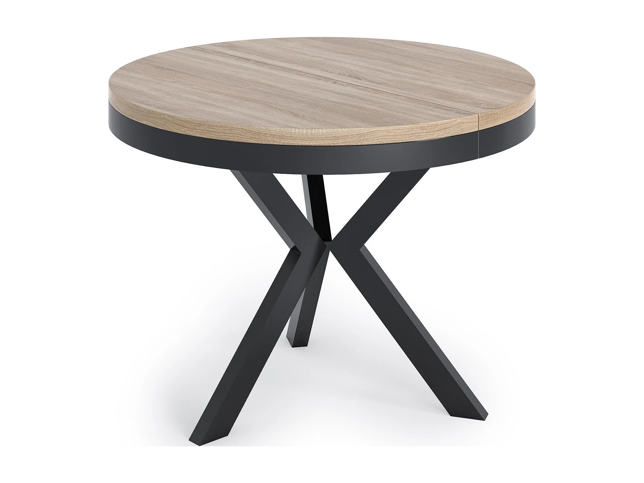 Runder Ausziehbarer Esstisch im Loft-Stil - Industrieller Tisch mit schwarzen Metallbeinen - Platzsparender Tisch für Wohnzimmer - Sonoma Eiche - 100 bis 140 cm