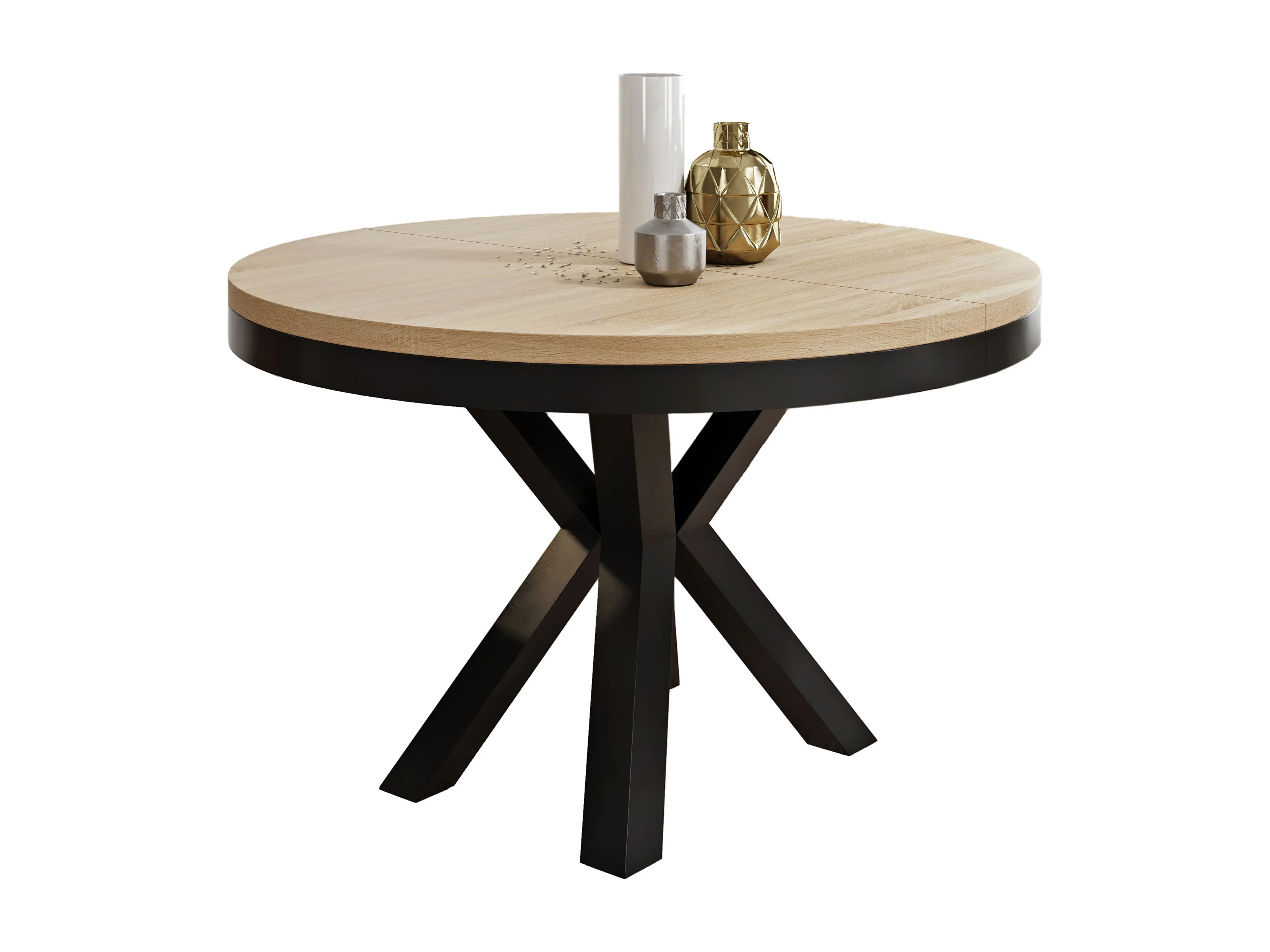 Runder Ausziehbarer Esstisch im Loft-Stil - Industrieller Tisch mit Schwarzen Metallbeinen - Platzsparender Tisch für Wohnzimmer - Sonoma Eiche - 120 bis 200 cm