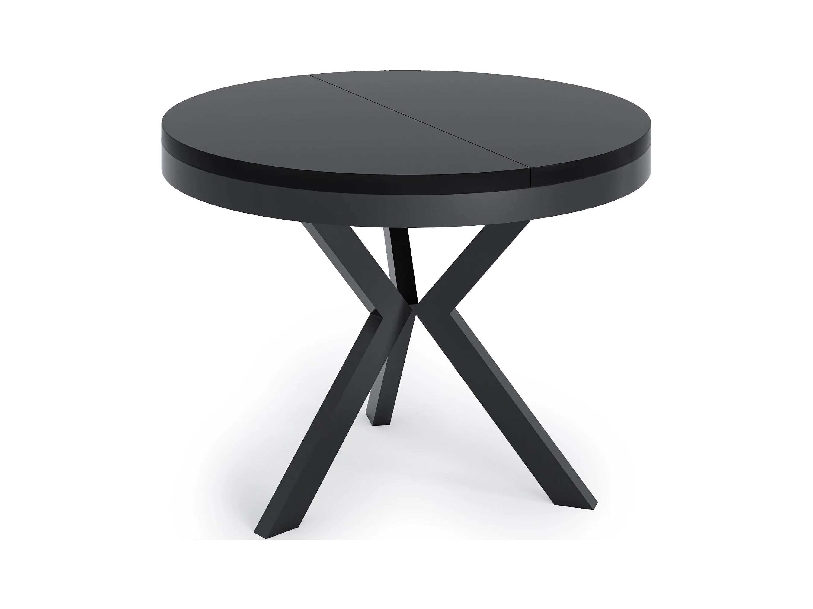 Runder Ausziehbarer Esstisch im Loft-Stil - Industrieller Tisch mit schwarzen Metallbeinen - Platzsparender Tisch für Wohnzimmer - Schwarz - 100 bis 140 cm