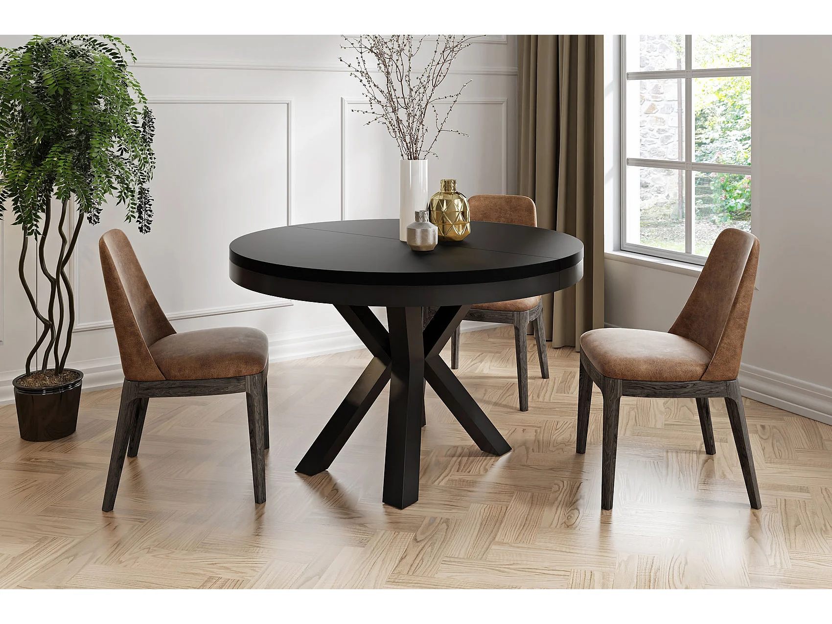 Runder Ausziehbarer Esstisch im Loft-Stil - Industrieller Tisch mit Schwarzen Metallbeinen - Platzsparender Tisch für Wohnzimmer - Schwarz - 100 bis 180 cm