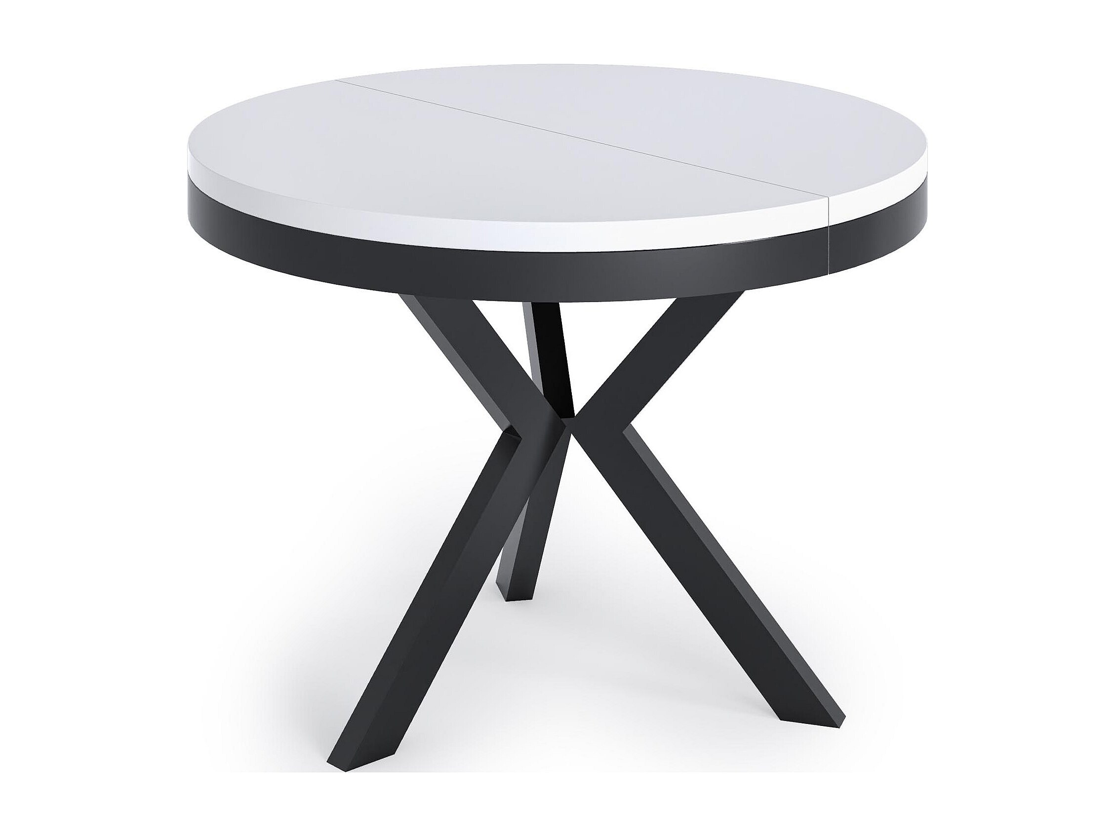 Runder Ausziehbarer Esstisch im Loft-Stil - Industrieller Tisch mit schwarzen Metallbeinen - Platzsparender Tisch für Wohnzimmer - Weiß - 100 bis 140 cm