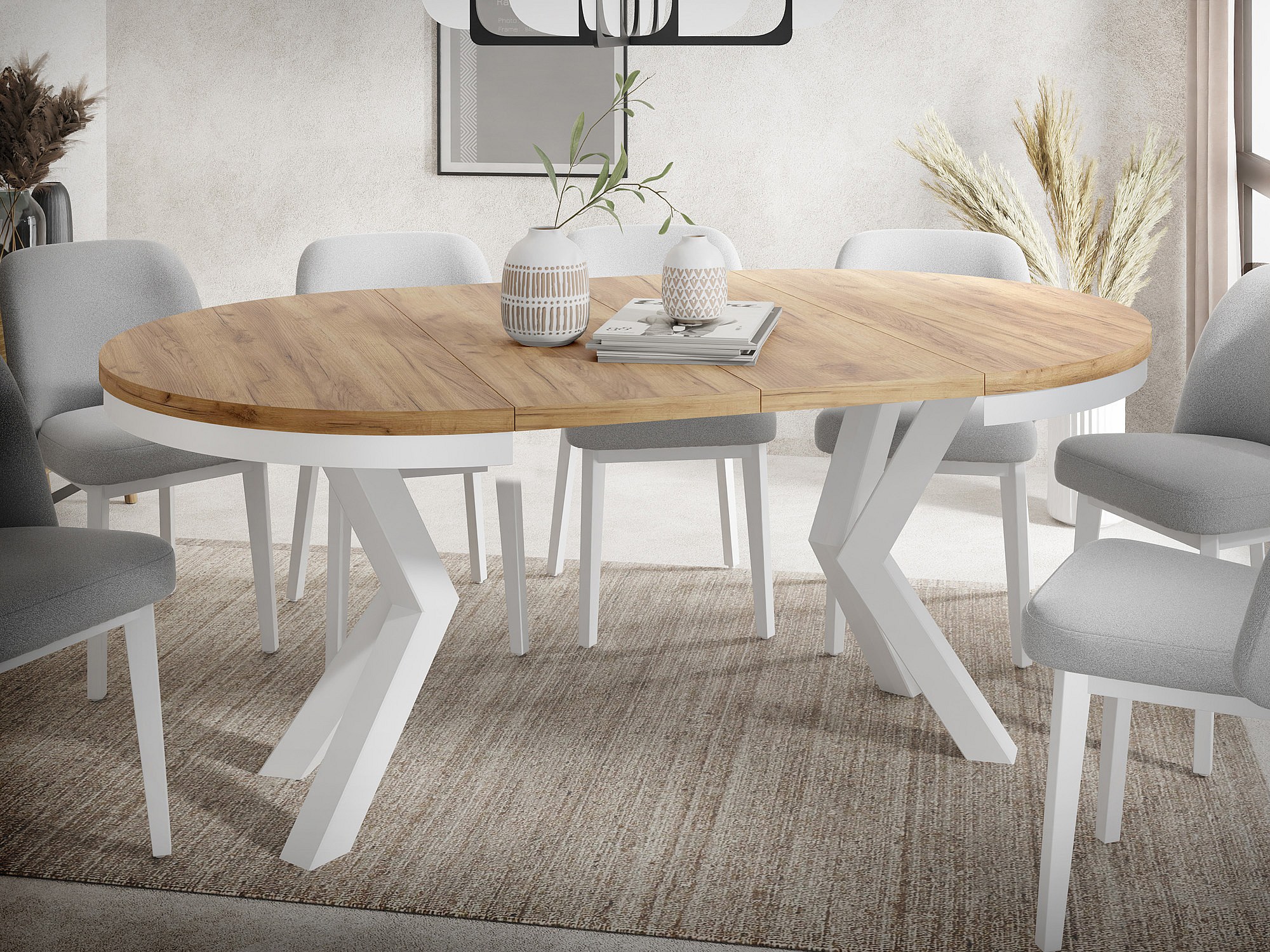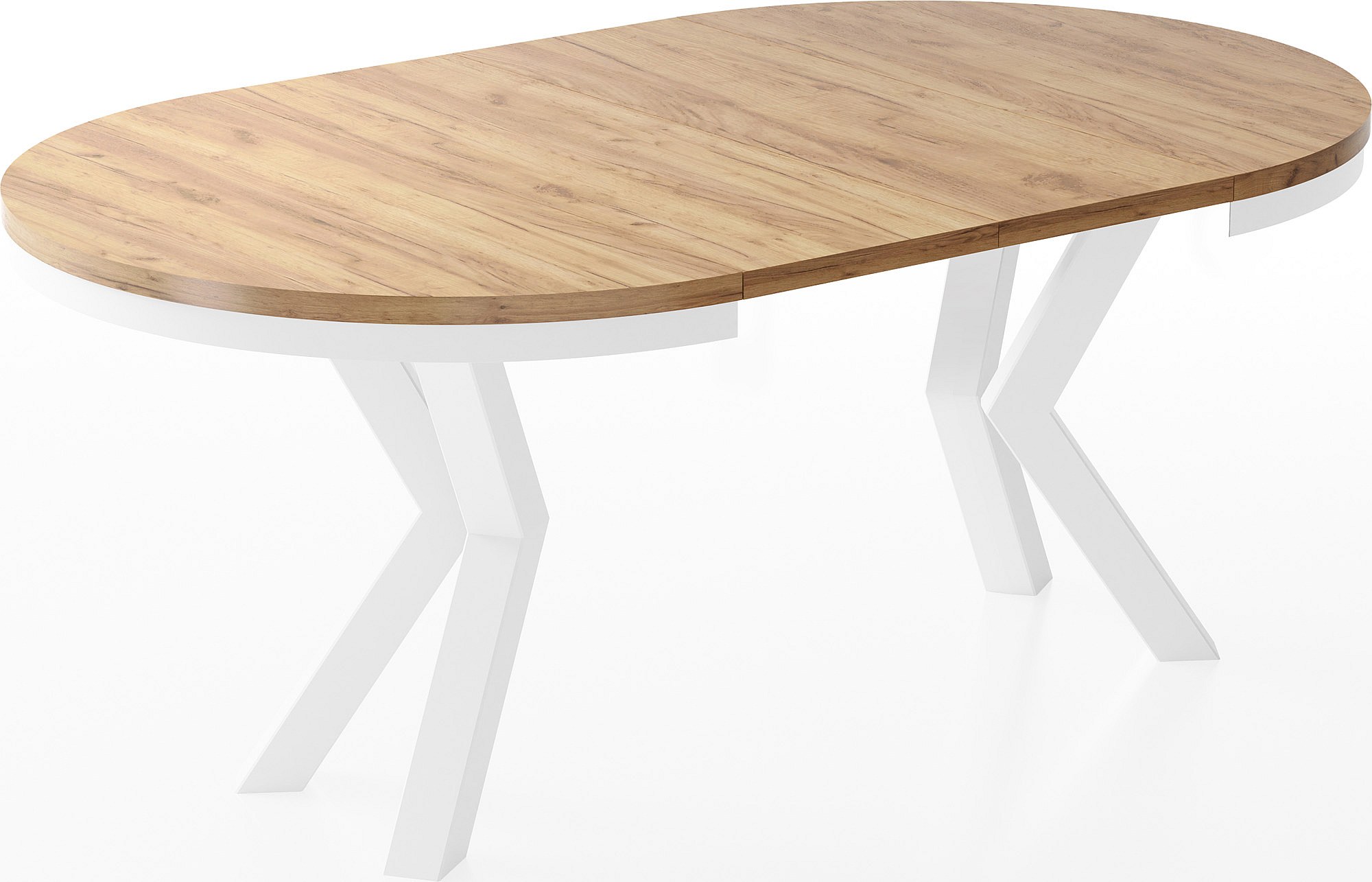 Runder Ausziehbarer Esstisch im Loft-Stil - Industrieller Tisch mit Weißen Metallbeinen - Platzsparender Tisch für Wohnzimmer - Craft Eiche - 120 bis 200 cm