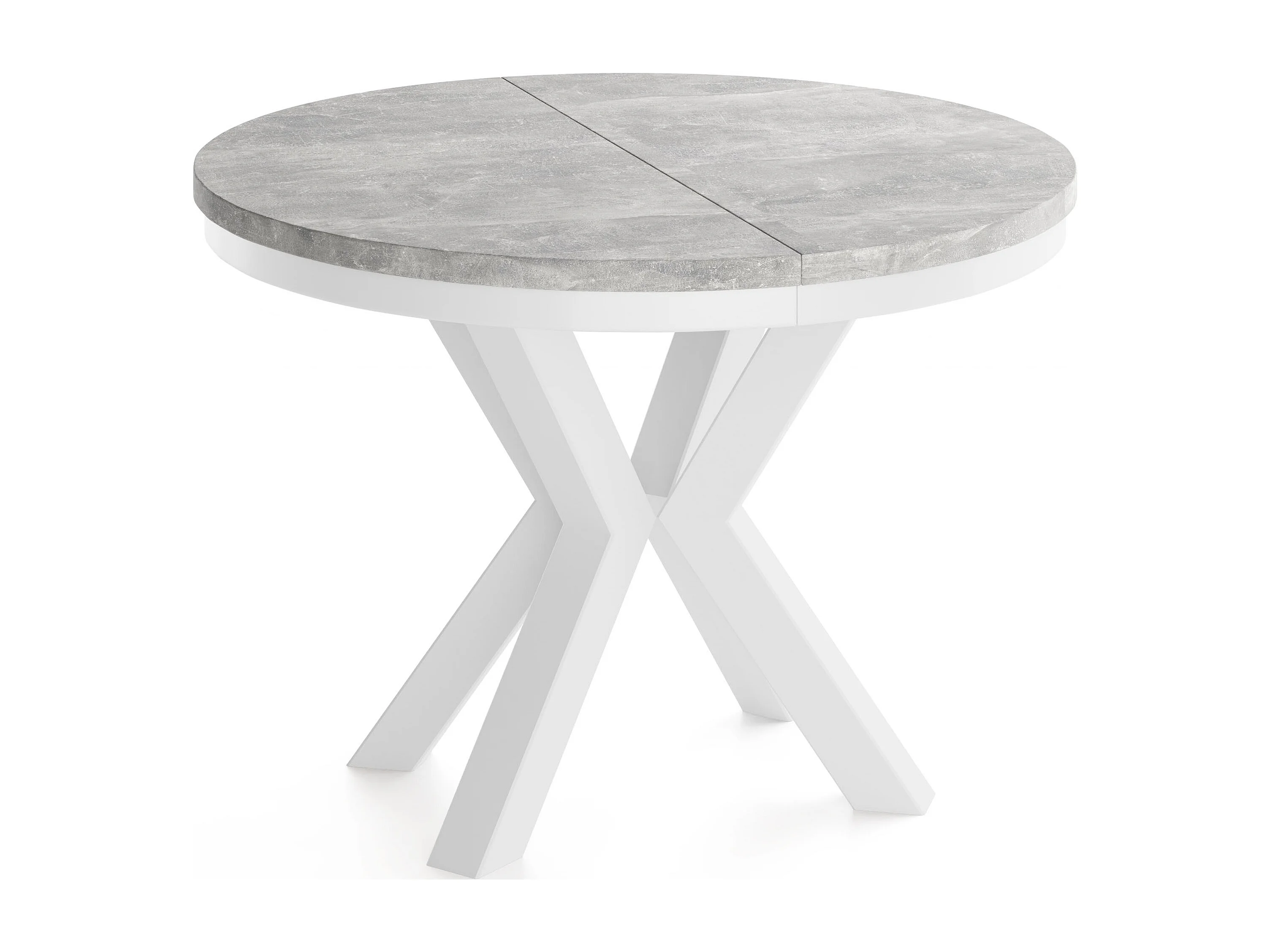Runder Ausziehbarer Esstisch im Loft-Stil - Industrieller Tisch mit Weißen Metallbeinen - Platzsparender Tisch für Wohnzimmer - Grauer Beton - 100 bis 180 cm