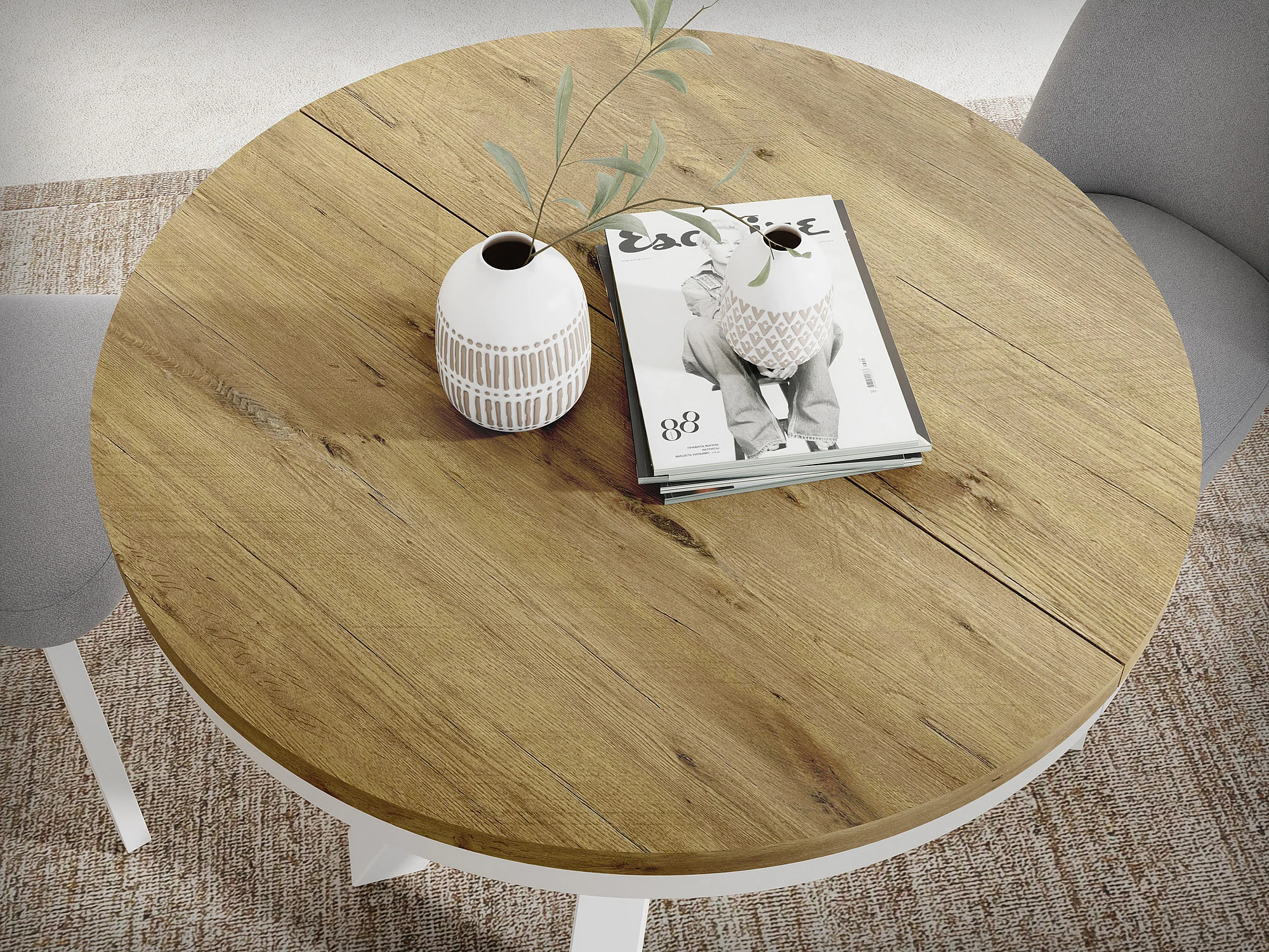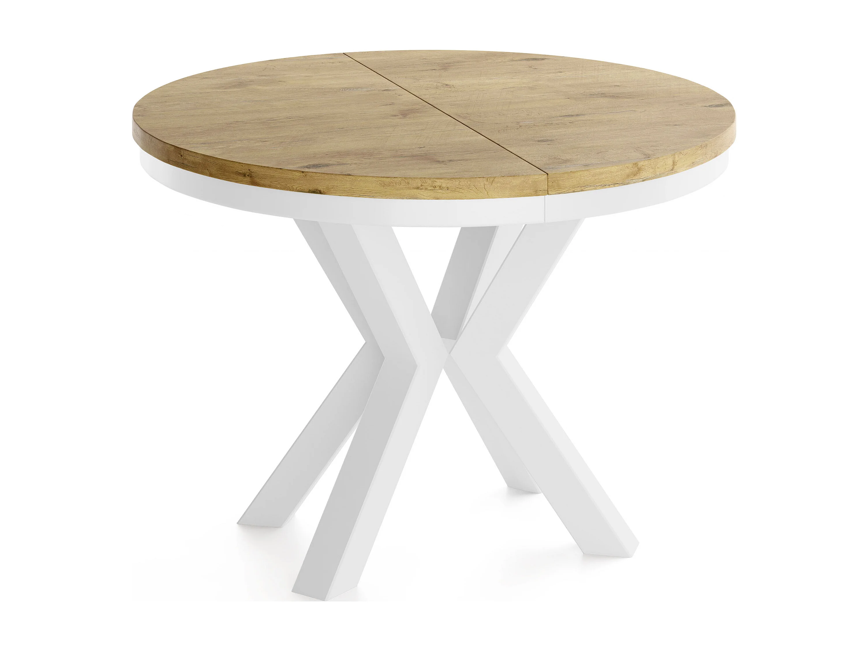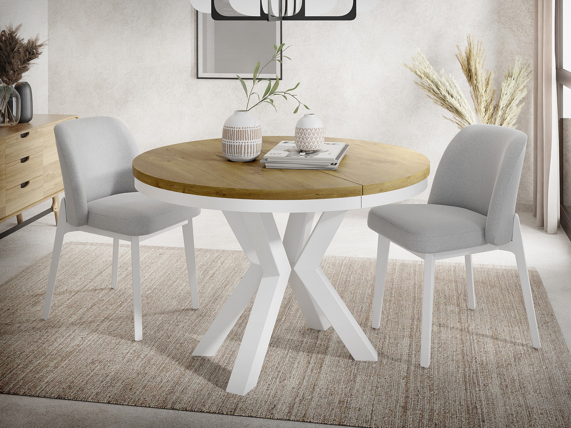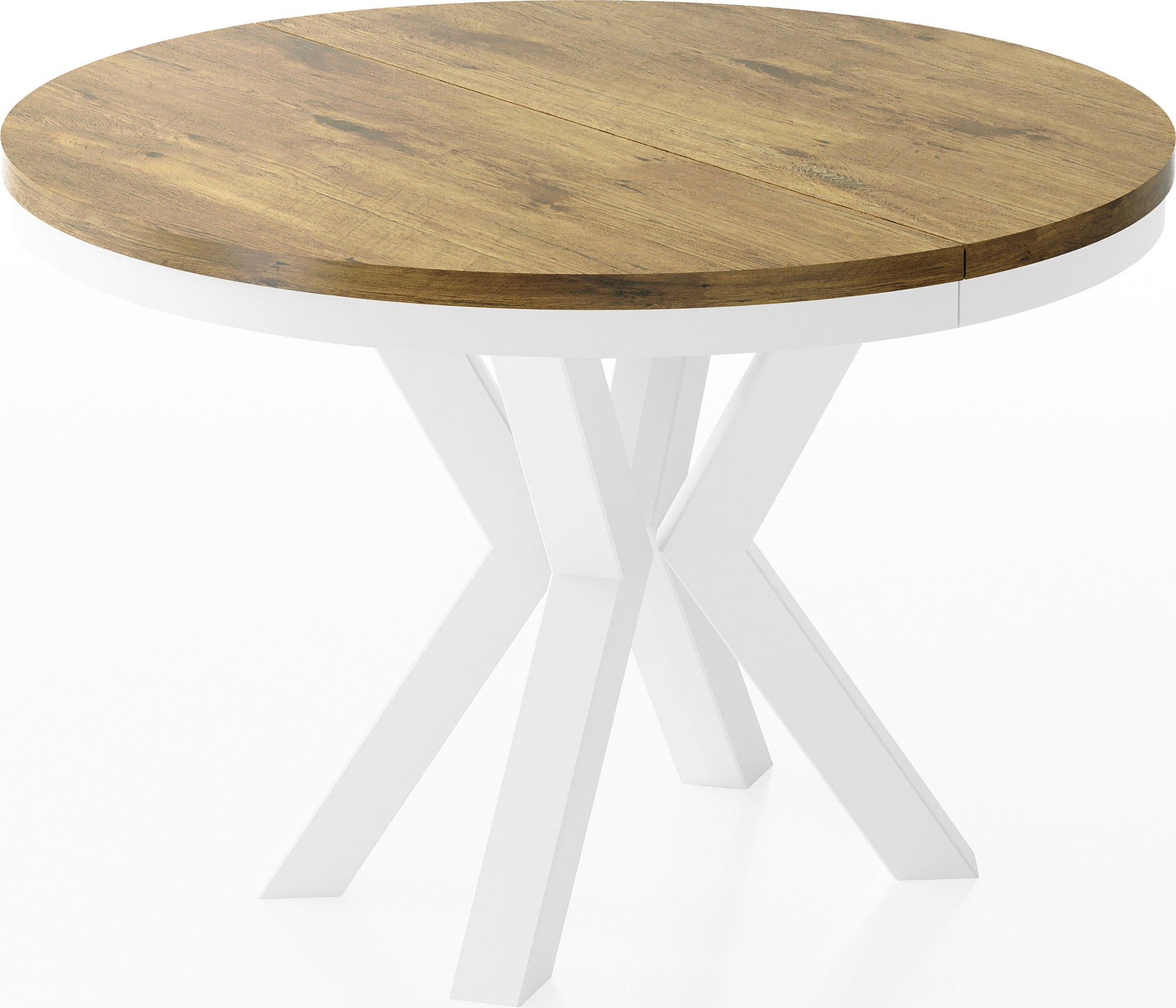 Runder Ausziehbarer Esstisch im Loft-Stil - Industrieller Tisch mit Weißen Metallbeinen - Platzsparender Tisch für Wohnzimmer - Lancelot Eiche - 100 bis 180 cm