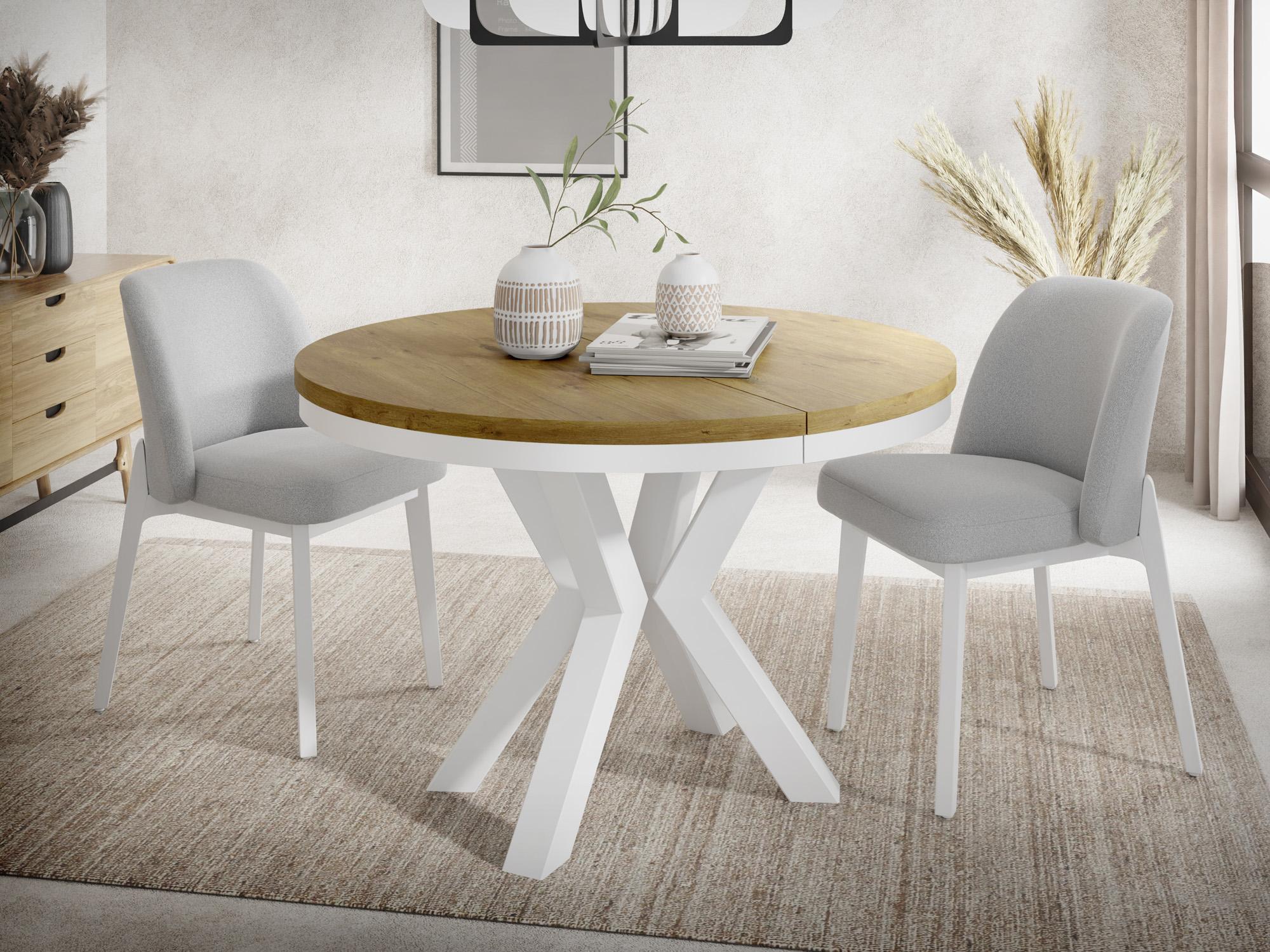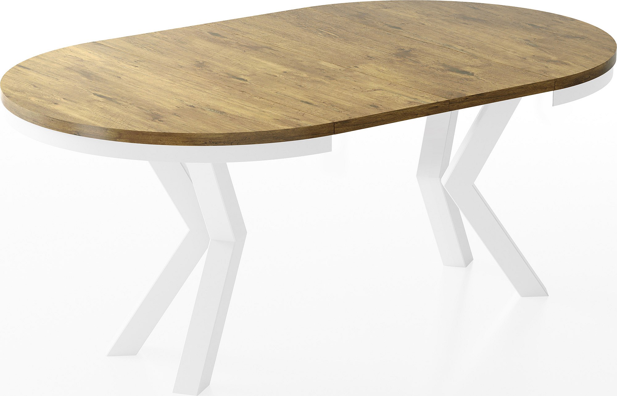 Runder Ausziehbarer Esstisch im Loft-Stil - Industrieller Tisch mit Weißen Metallbeinen - Platzsparender Tisch für Wohnzimmer - Lancelot Eiche - 120 bis 200 cm