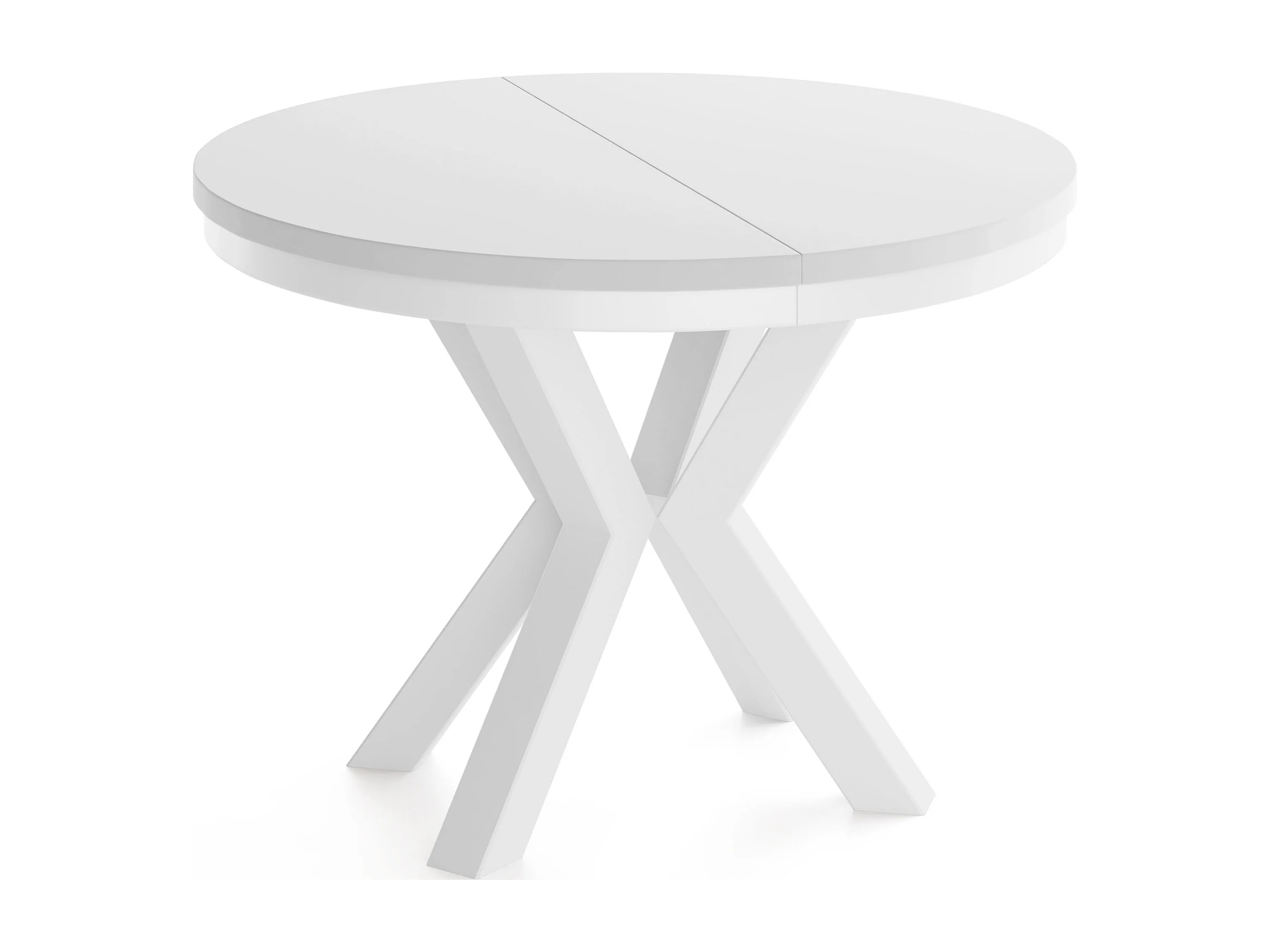 Runder Ausziehbarer Esstisch im Loft-Stil - Industrieller Tisch mit Weißen Metallbeinen - Platzsparender Tisch für Wohnzimmer - Weiß - 100 bis 180 cm