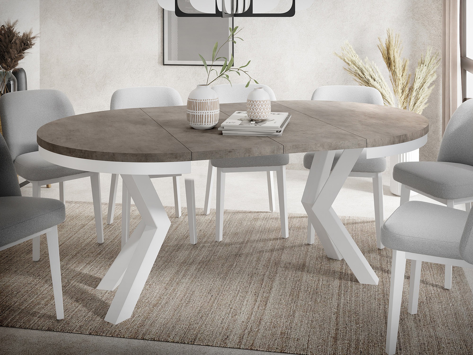 Runder Ausziehbarer Esstisch im Loft-Stil - Tisch mit Weißen Metallbeinen - Platzsparender Tisch für Wohnzimmer - Dark Grey Chicago Concrete 120 bis 180 cm