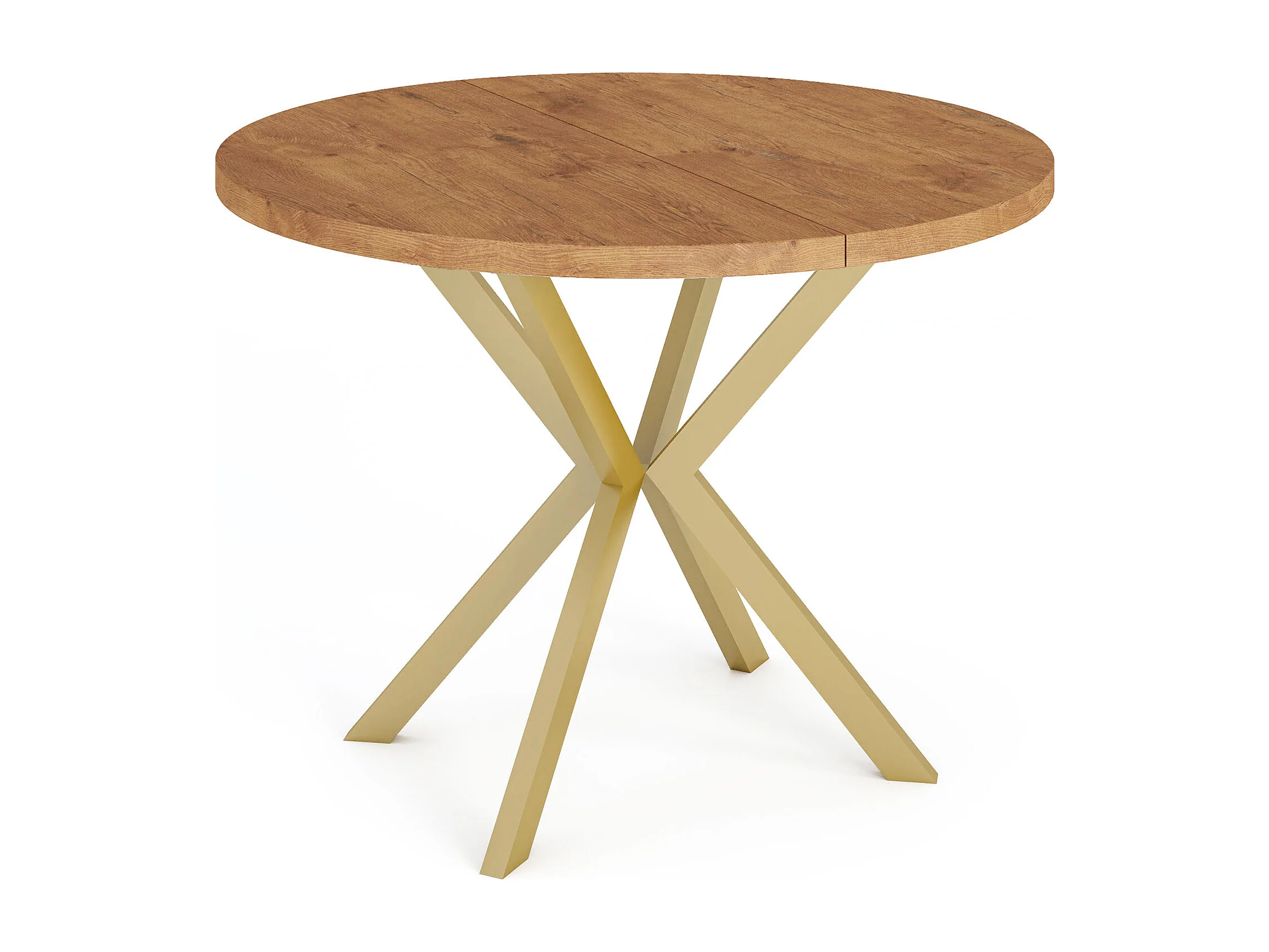 Runder Esstisch Ausziehbar ⌀ 100 cm - Goldene X-Beine - Braun - EU Herstellung
